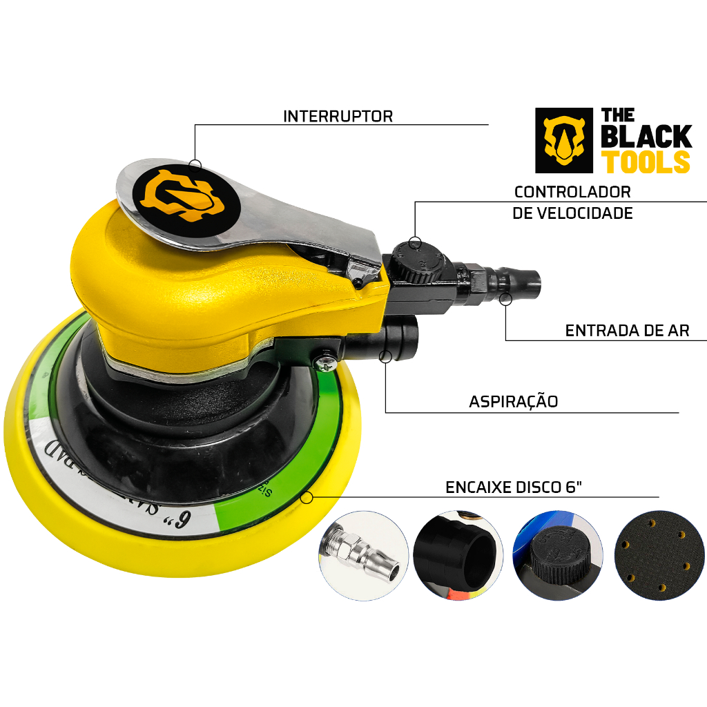 Lixadeira Pneumática Orbital 6 Rokit Roquite Hookit The Black Tools