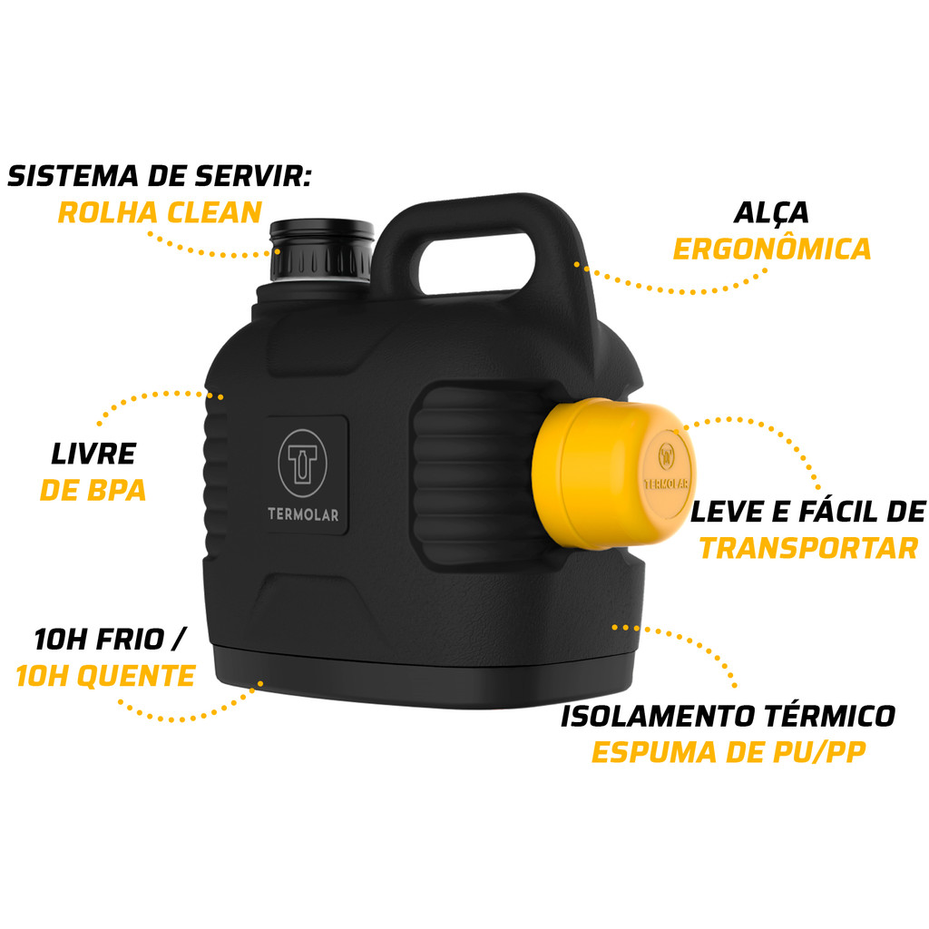 Kit Caixa Cooler Térmico 20 e 8 Litros com Garrafão 5 Litros Preto Termolar