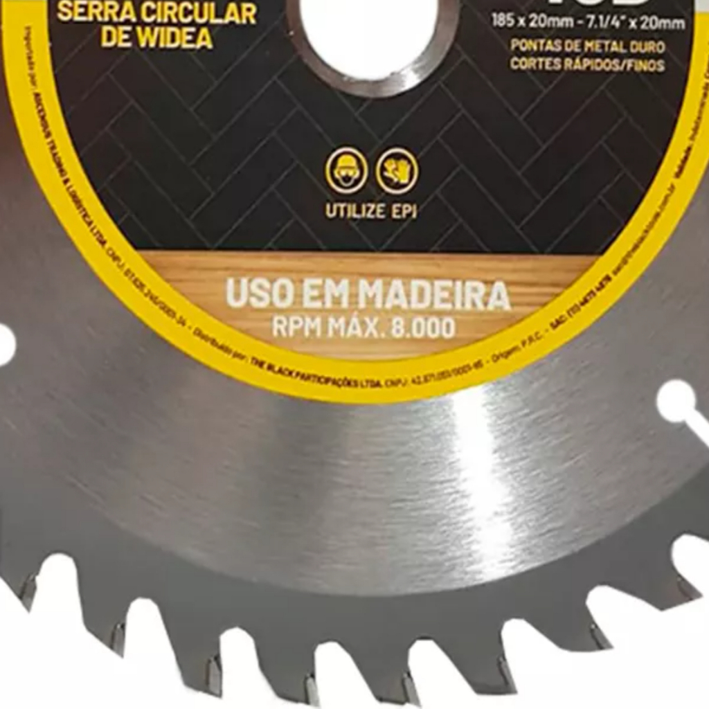 Disco De Serra Profissional Para Madeira 185 X 20mm 40 Dentes