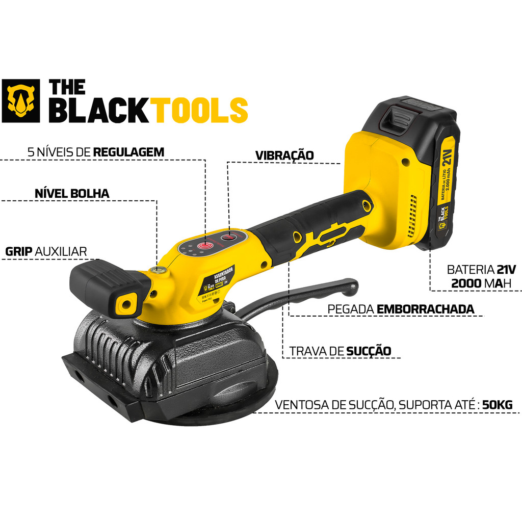 Máquina Assentar Cerâmica Pisos Porcelanato Com Ventosa À Bateria 21v The Black Tools TTM21B