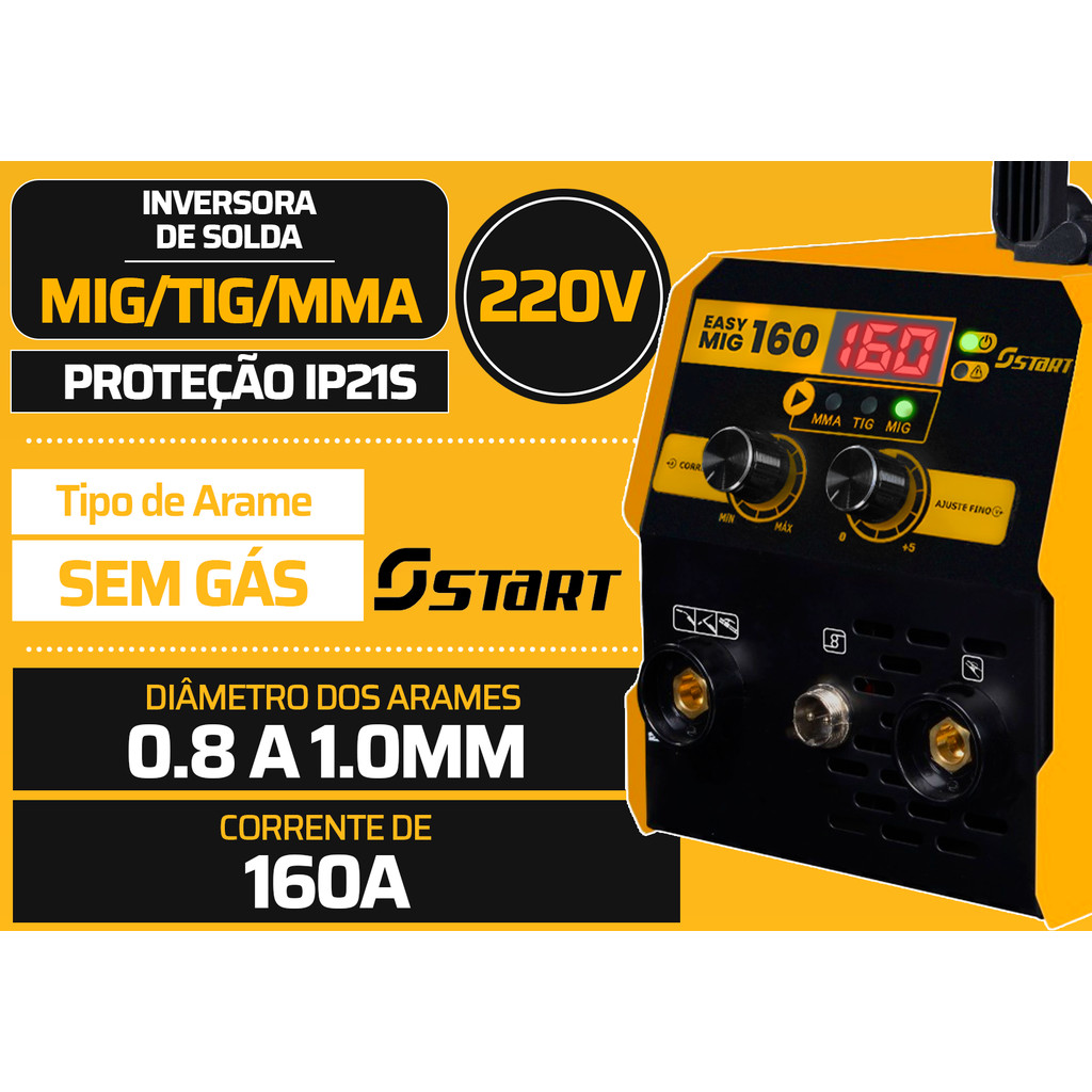 Maquina Inversora Solda 220v Easy Mig Tig 120 Máscara Eletrodo + Acessórios