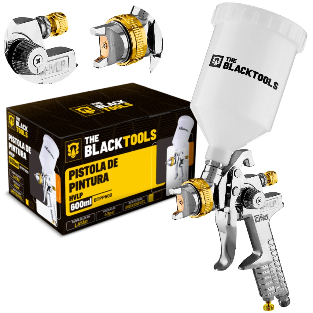 Pistola De Pintura 600ml Profissional Gravidade Hvlp The Black Tools