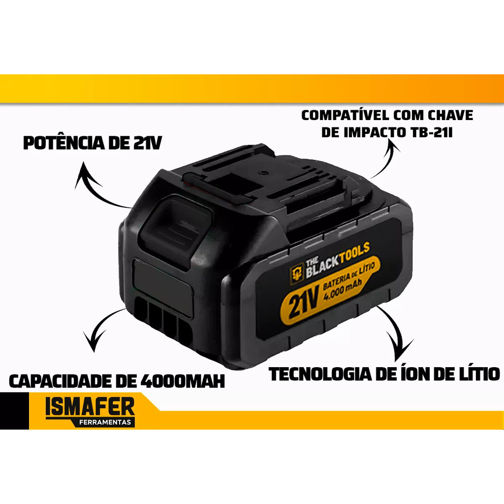 Bateria De Lítio 21v 4000mah Recarregável The Black Tools