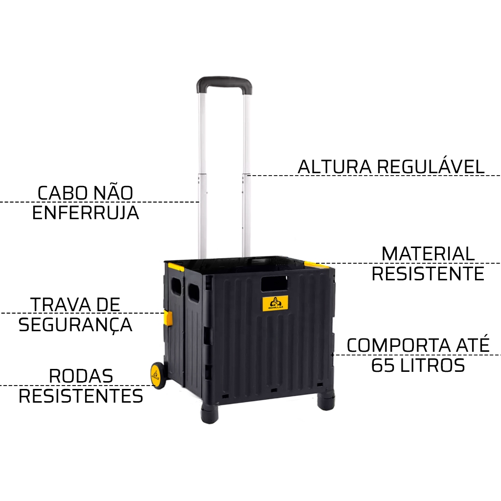 Carrinho Dobrável Multiuso Com Alça Dobrável 65l Gorillaz