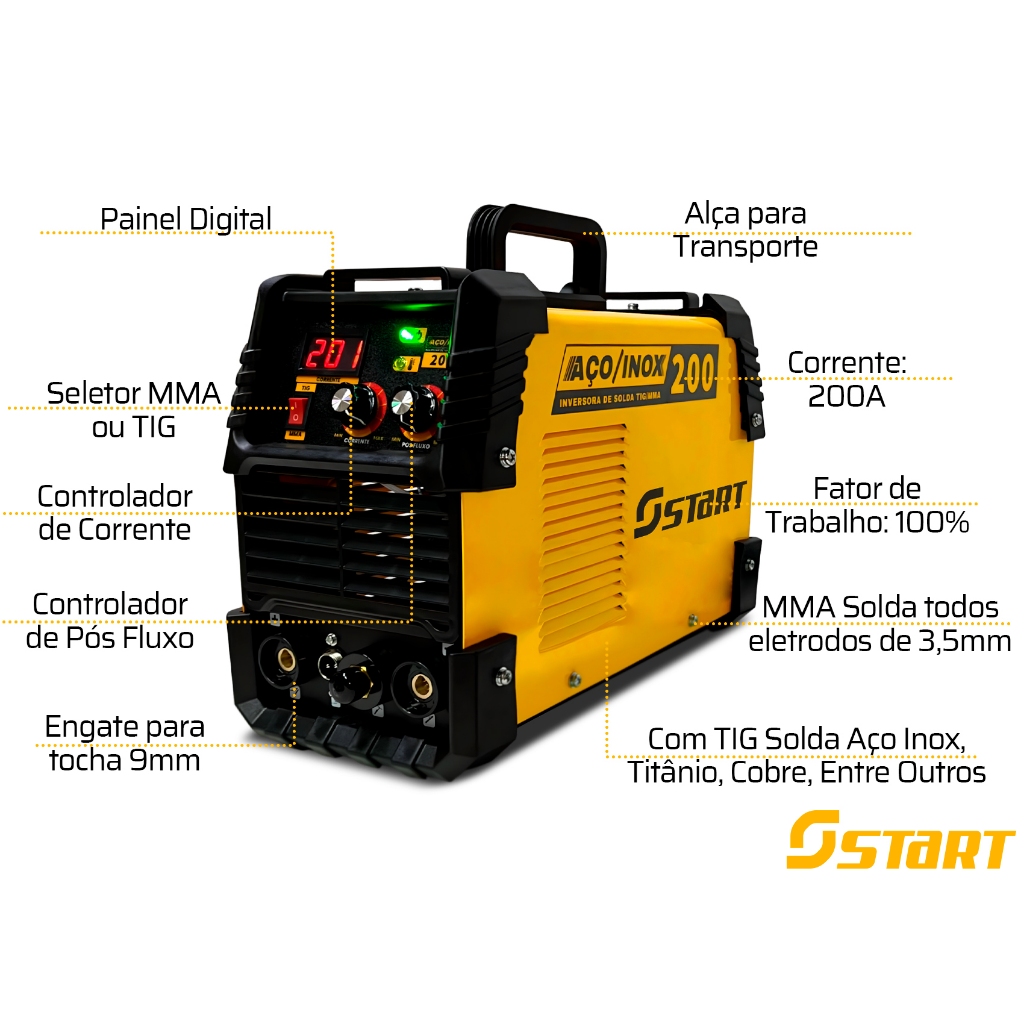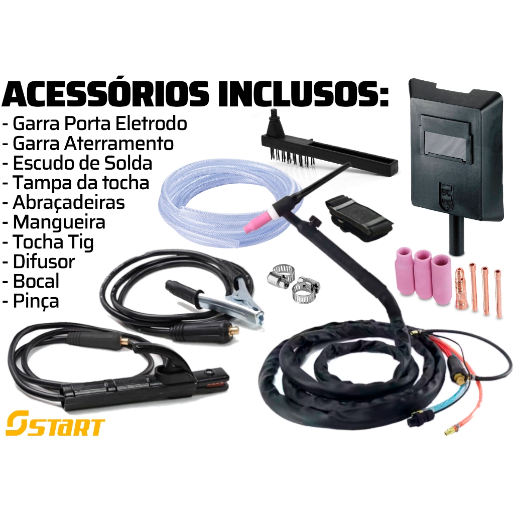 Inversora De Solda Start Multiprocessos TIG MMA Eletrodo MaxTig 200A Regulador Argônio E Acessórios