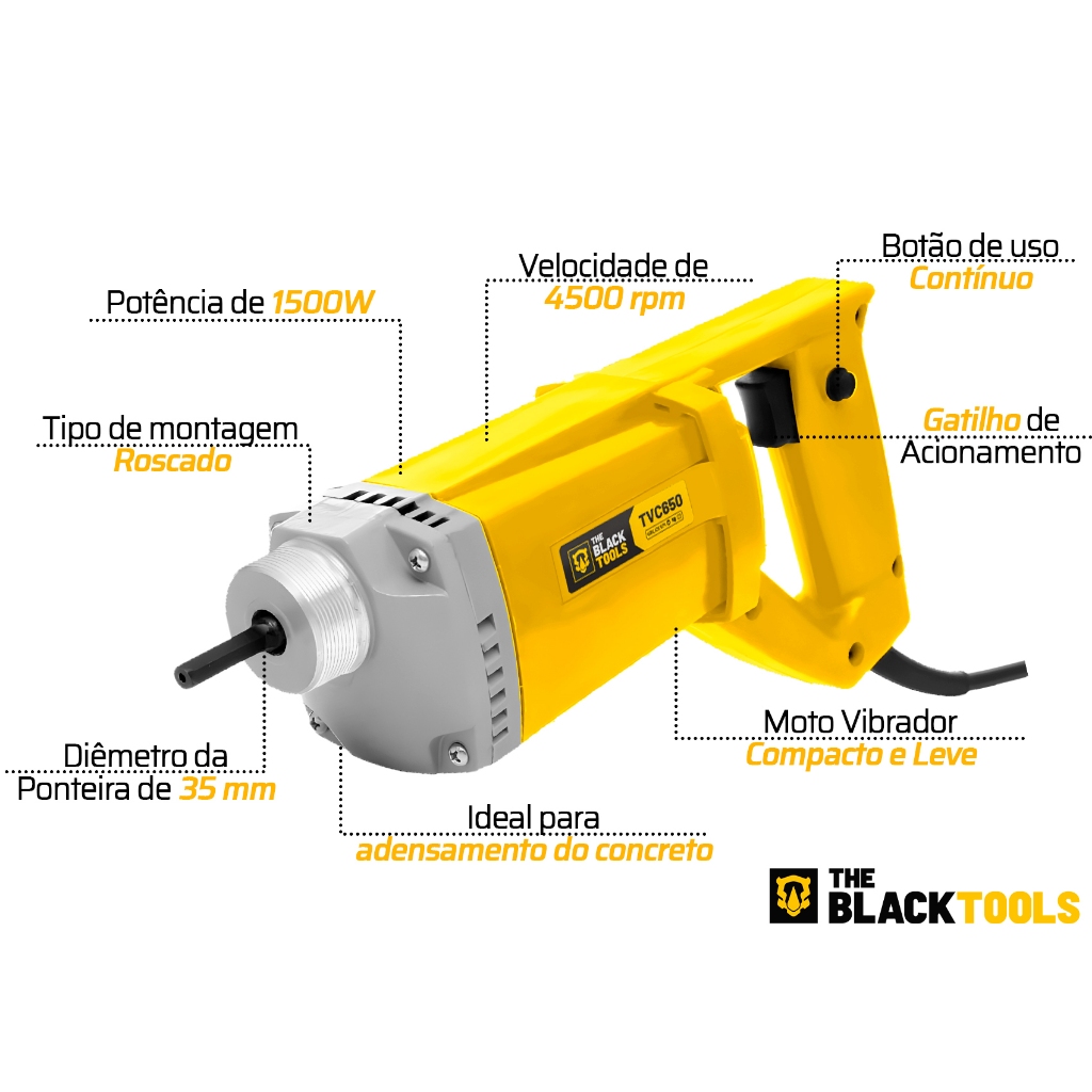 Kit Vibrador Concreto 1500w Com Mangote Mangueira 1,45mx35mm Tvc650 The Black Tools