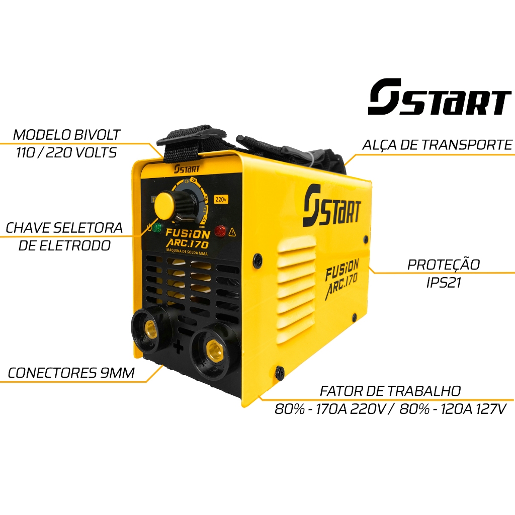 Maquina De Solda Fusion Arc 170a Com Esmerilhadeira + Discos Luvas E Mascara