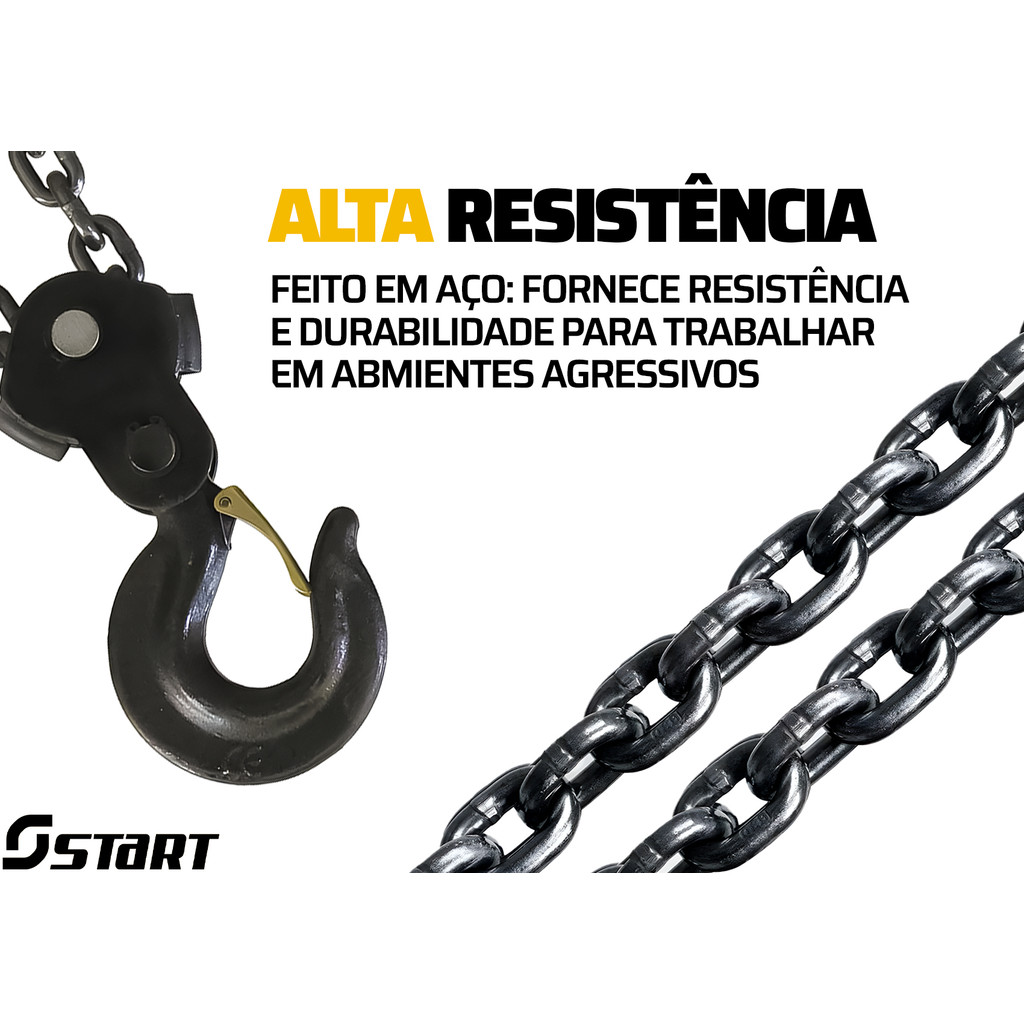 Talha Manual Mecânico 2 toneladas Corrente 5 metros Elevação Start