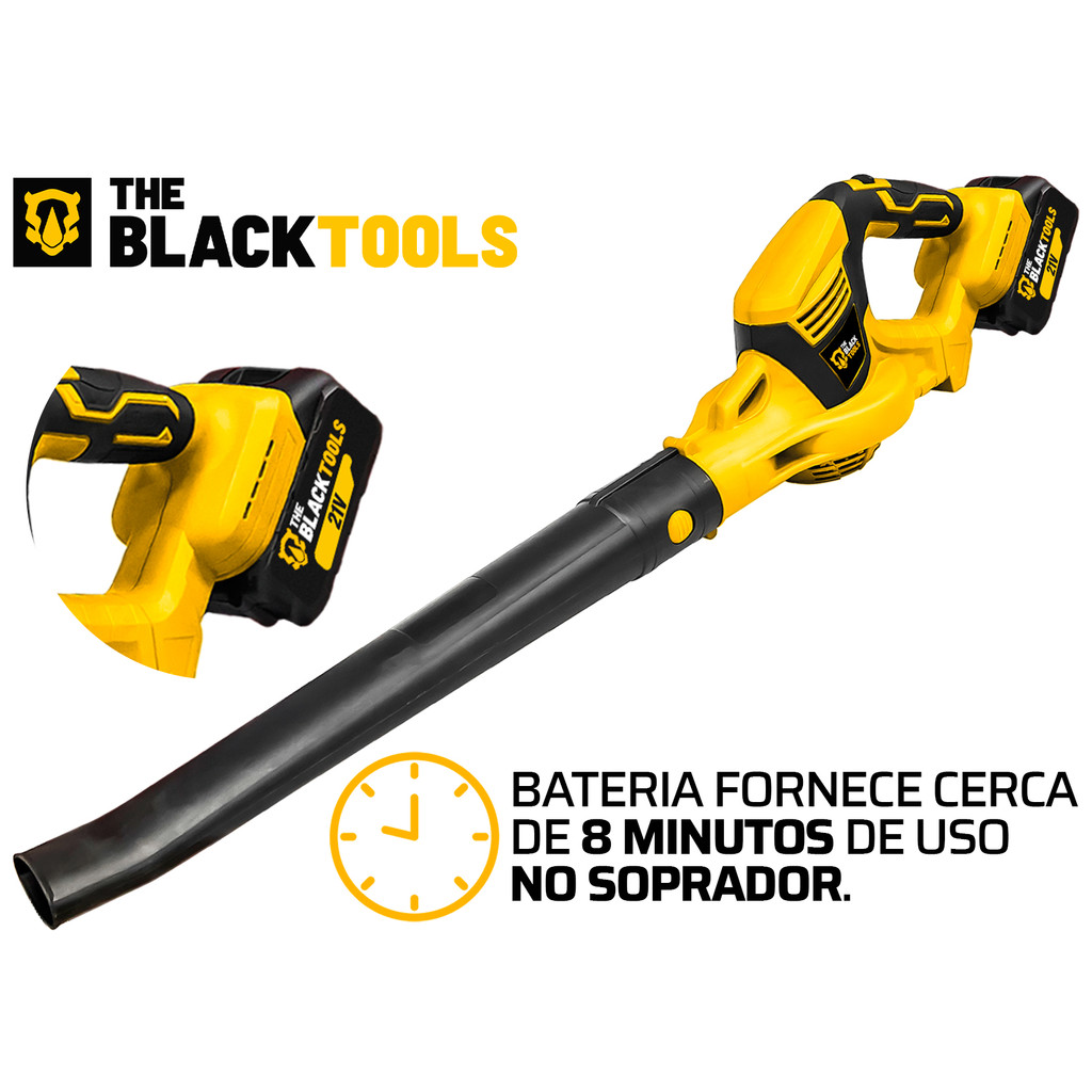 Soprador De Folhas Elétrico Profissional Limpeza Com 2 Baterias 21v Tcb21c Portátil The Black Tools