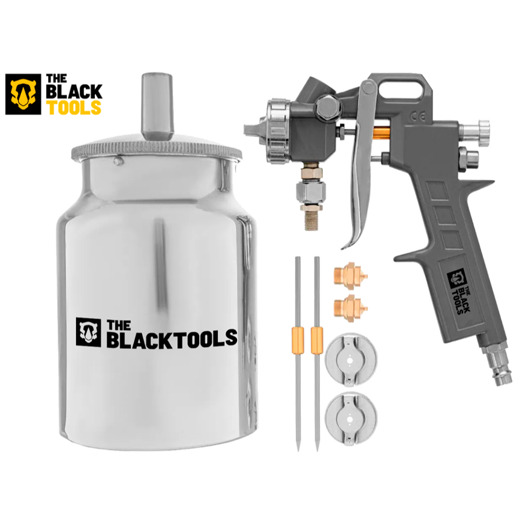 Pistola De Pintura Sucçao 1000ml + Mangueira Espiral 1/4 The Black Tools Btpt1100