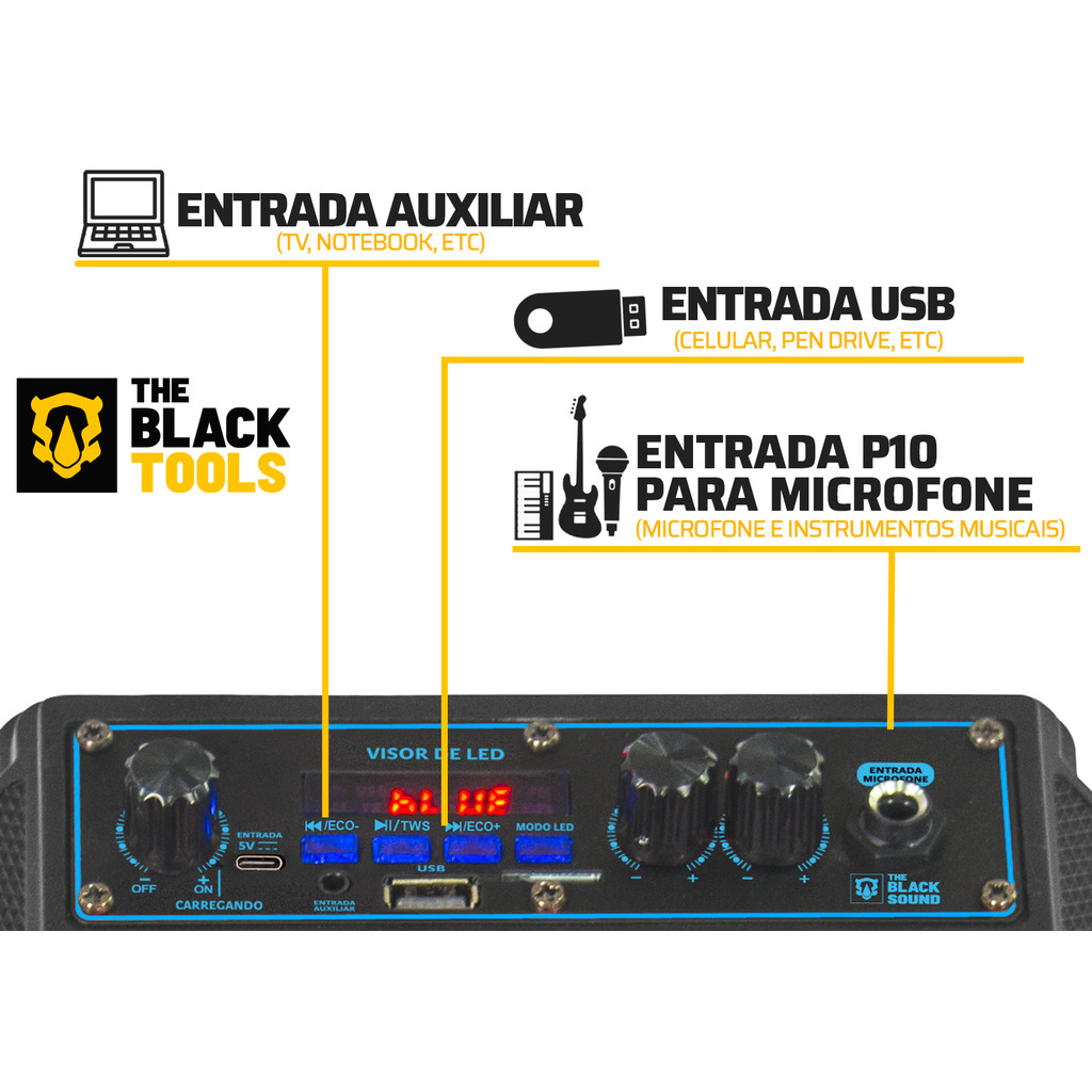 Caixinha Caixa De Som Amplificada Bluetooth Bivolt 250w Rms The Black Tools