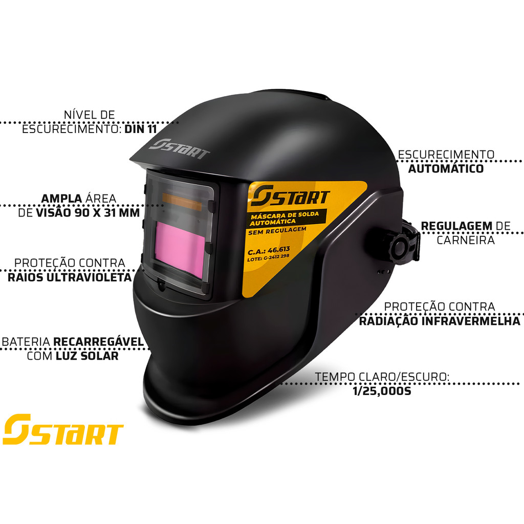Mascara De Soldar Automática Start Sem Regulagem Capacete De Solda