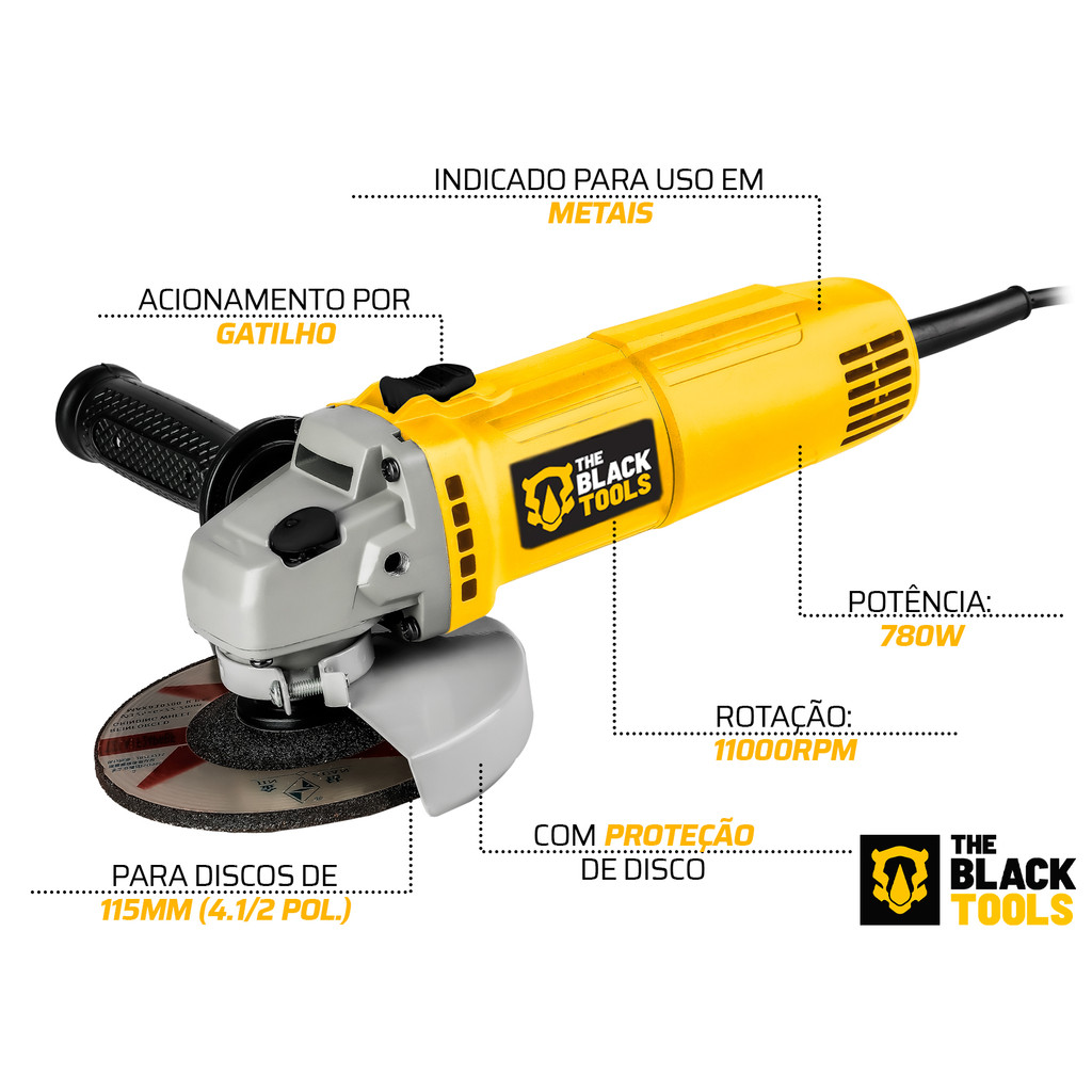 Máquina Inversora Solda 220v Eletrodo + Esmerilhadeira 780w 115mm 4.1/2 + Acessorio The Black Tools