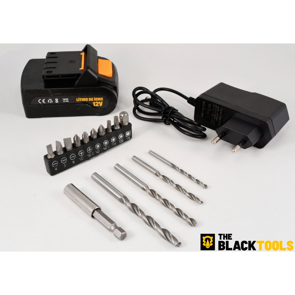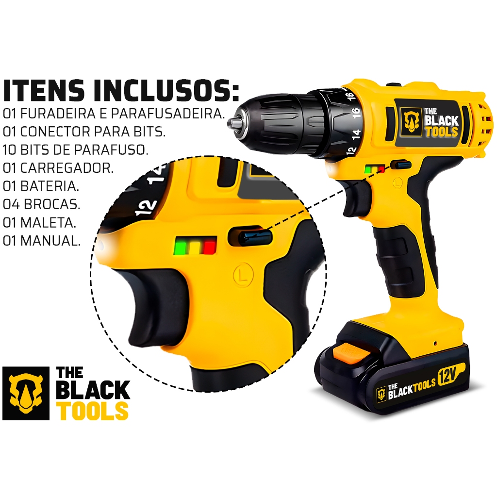 Jogo Ferramentas 169 Pçs Maleta Furadeira Parafusadeira Bateria Tb-12e 12v 3/8 10mm The Black Tools