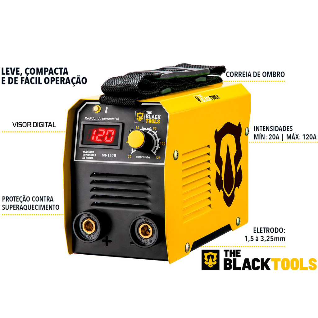 Máquina Inversora De Solda Mma Mi150d 120a Com Eletrodo E Óculos The Black Tools