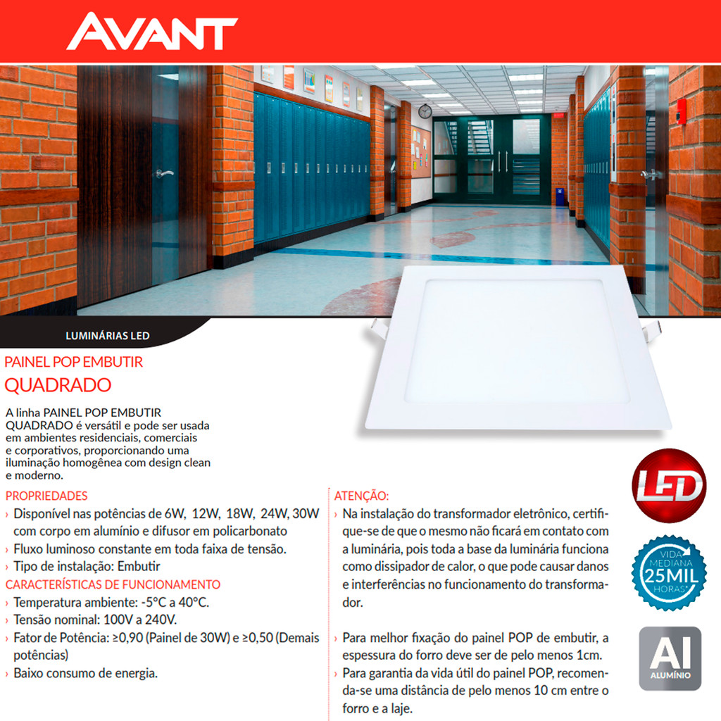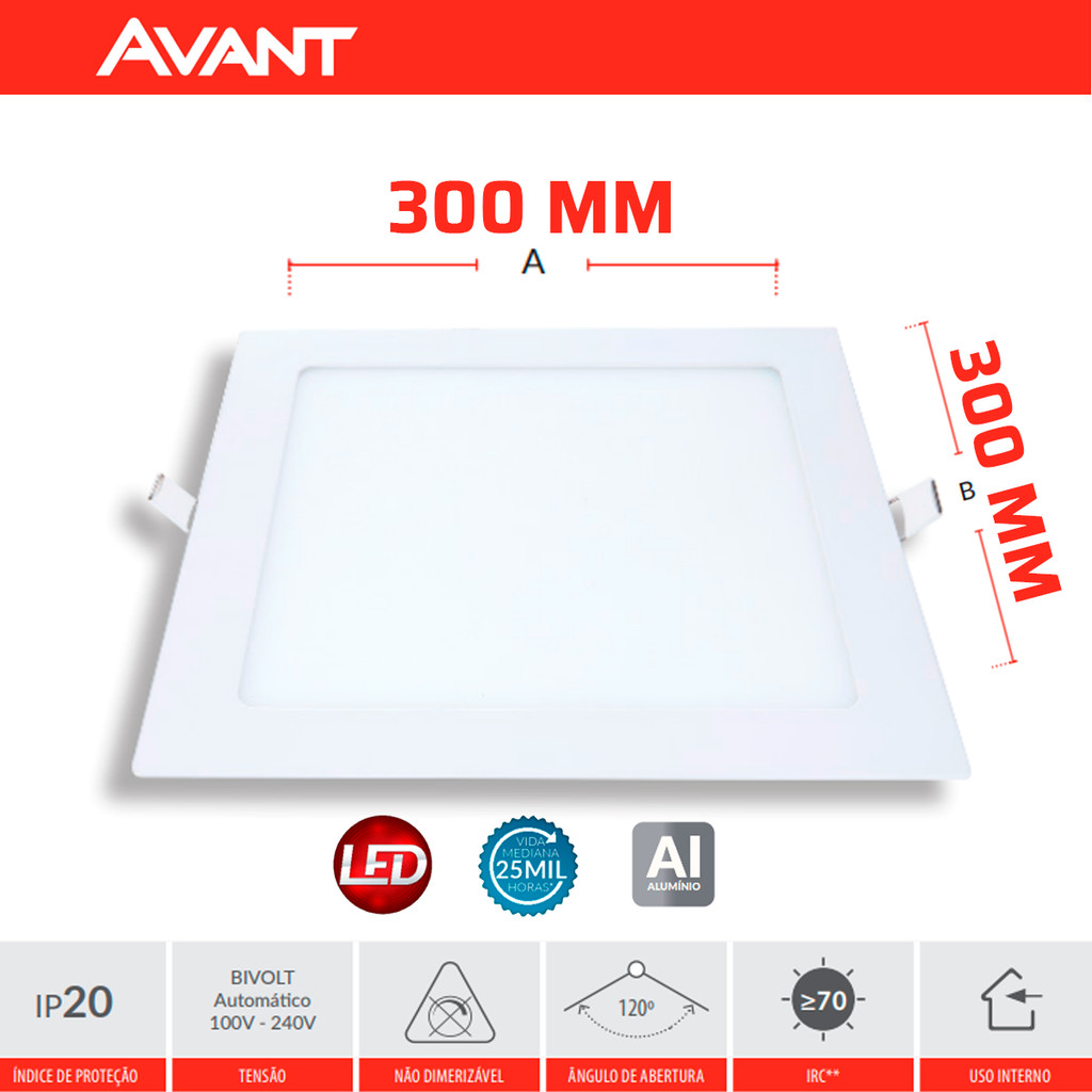 Painel Plafon Led Embutir Branco Neutro 24w 30x30 Avant 858130874