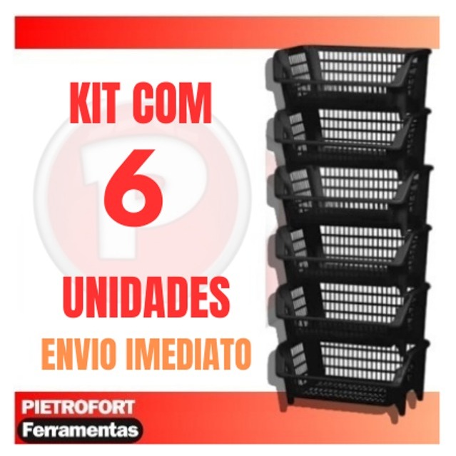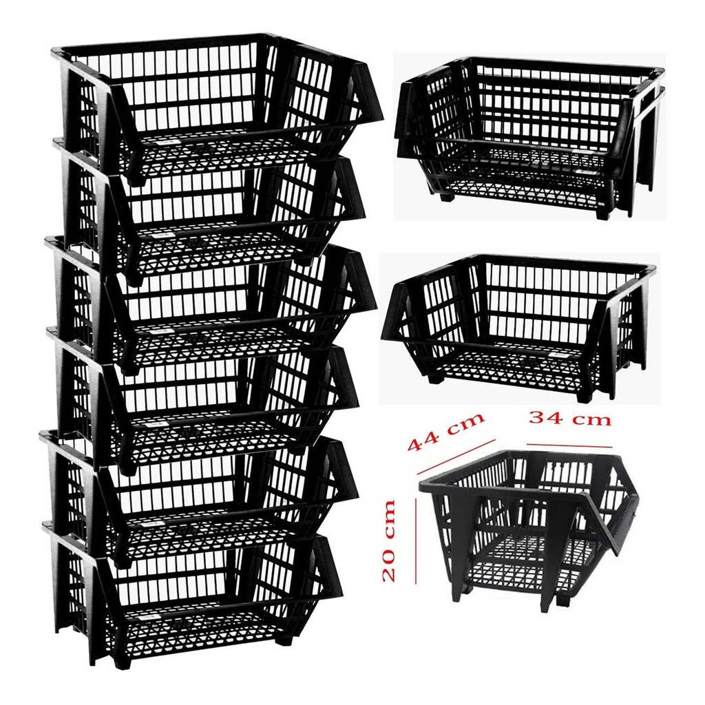 6 Peças Cesto Empalhável Expositor Organizador Preto