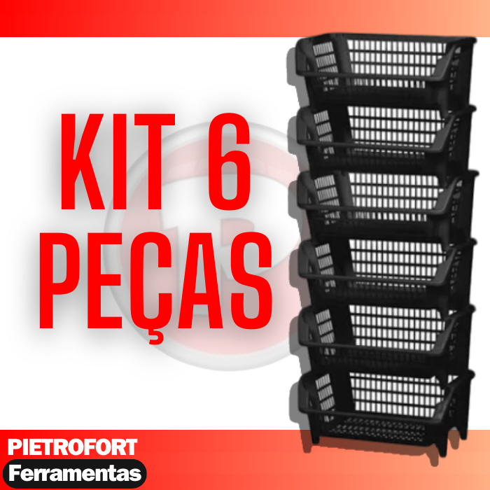 6 Cesto Empilhavel Expositor Organizador Preto N.FISCAL