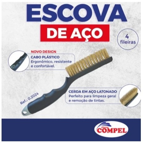 Escova De Aço Prime 4 Fileiras Com Cabo Plástico Compel