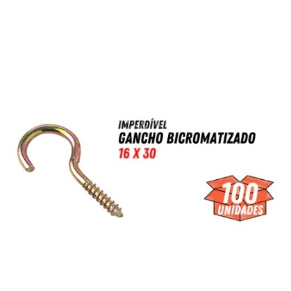 Kit 100 Peças Parafuso Gancho Aberto Pitão 16 X 30 Para Madeira Bicromatizado - Jomarca- 22073