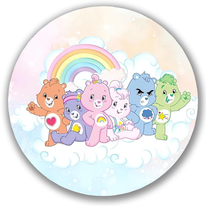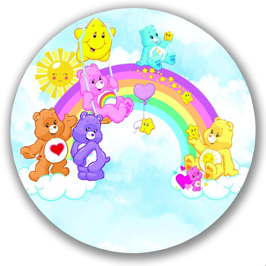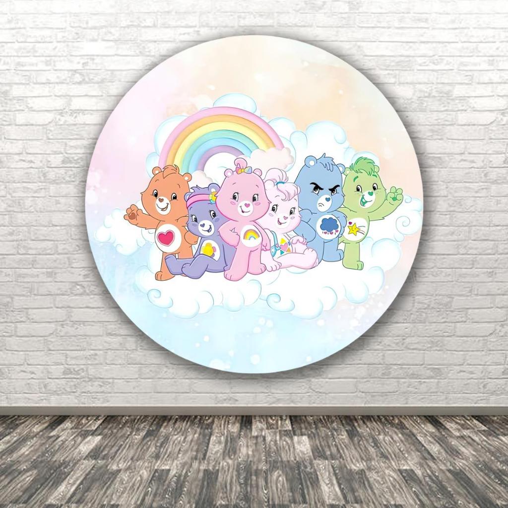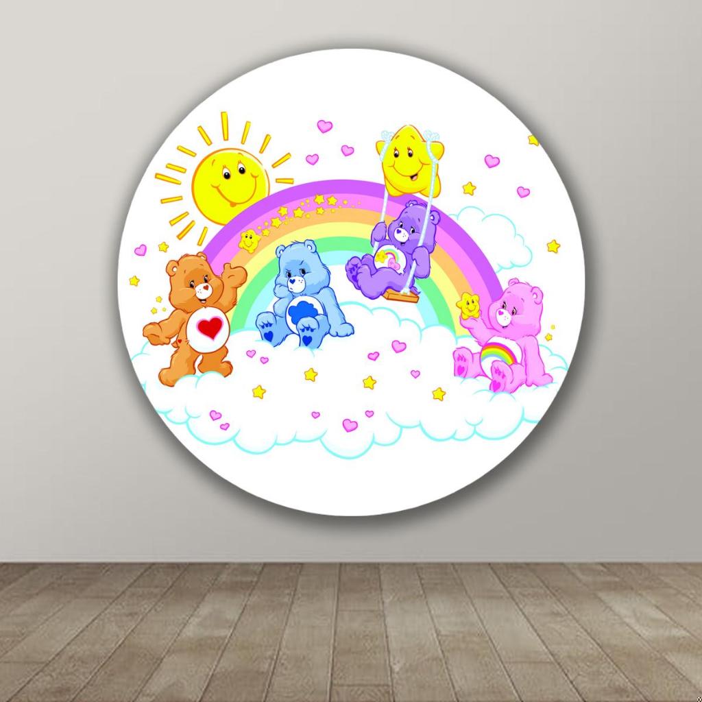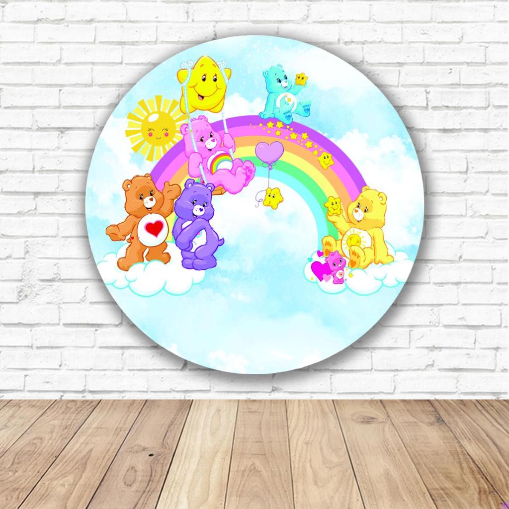 Capa Para Painel Redondo Tema Ursinhos Carinhosos Colorido Arco iris Decoração Malha Sublimada