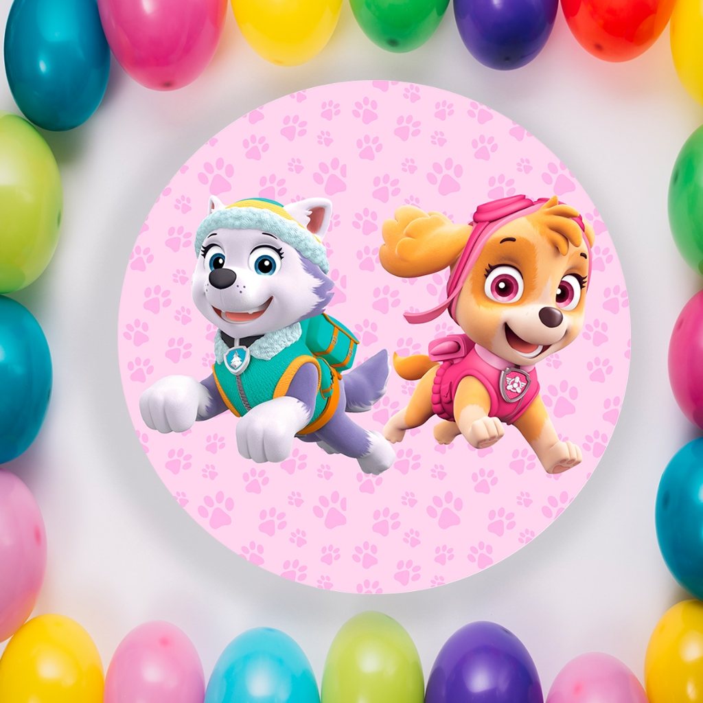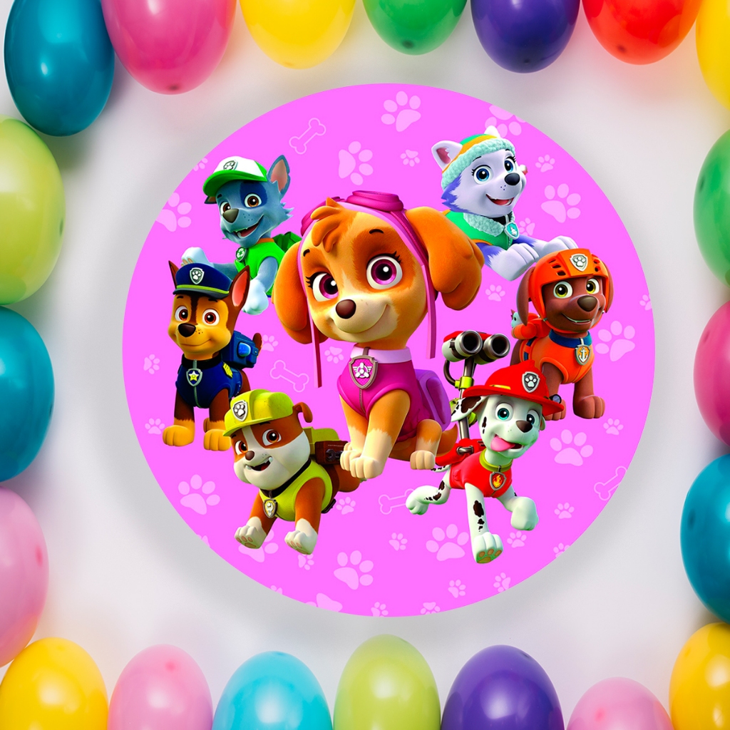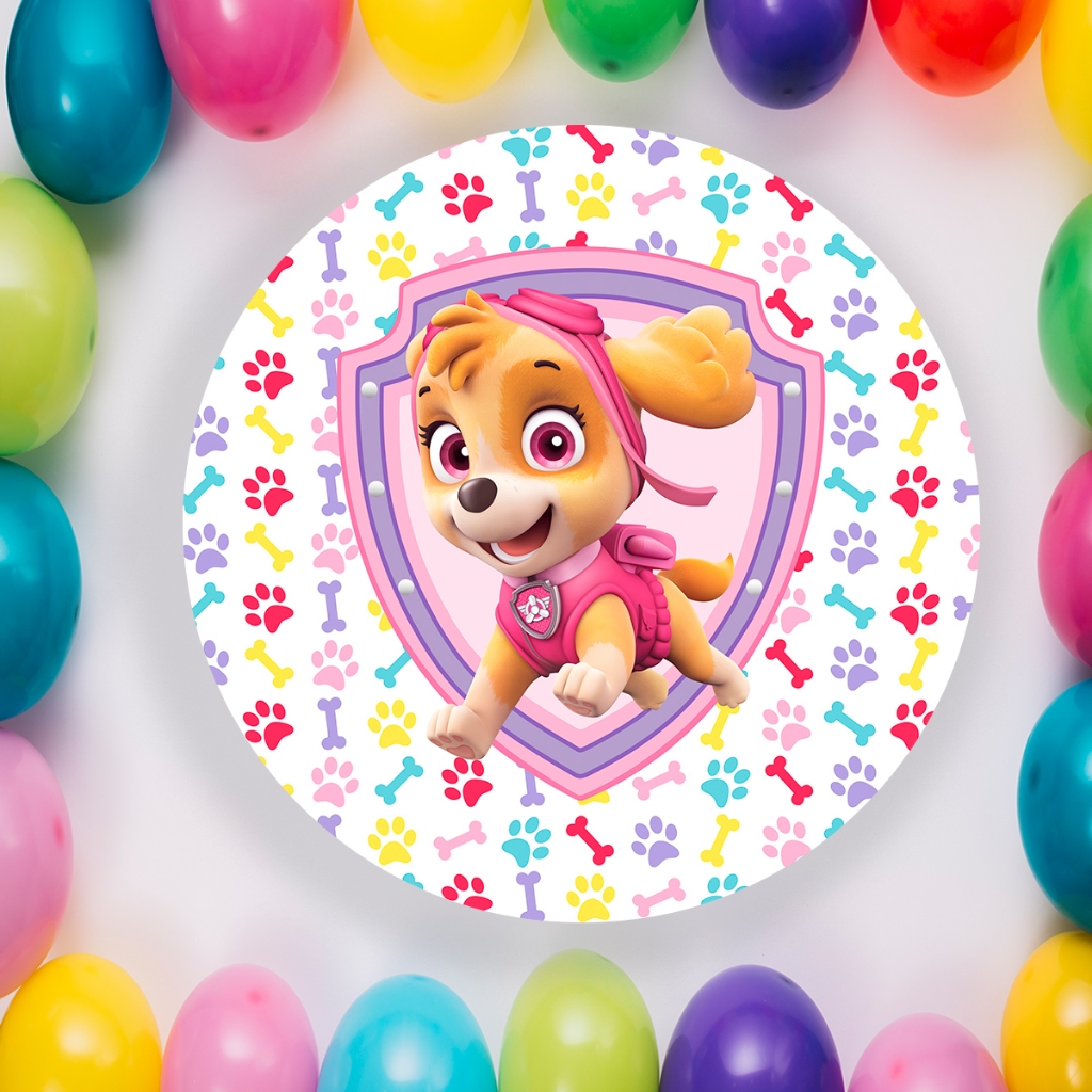 Capa Para Painel Redondo Temático Patrulha Canina Sky Cachorro Malha Tecido Para Festa Aniversario Infantil Crianças