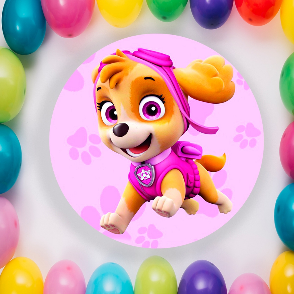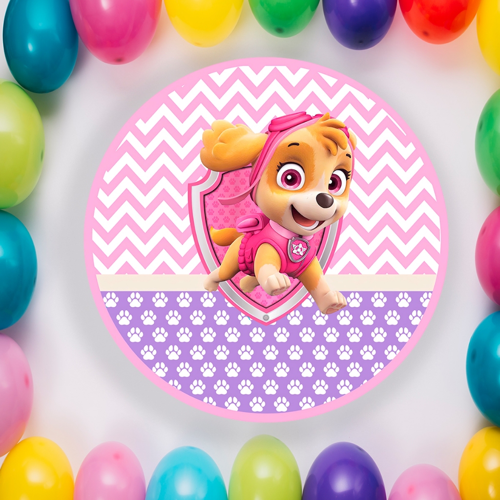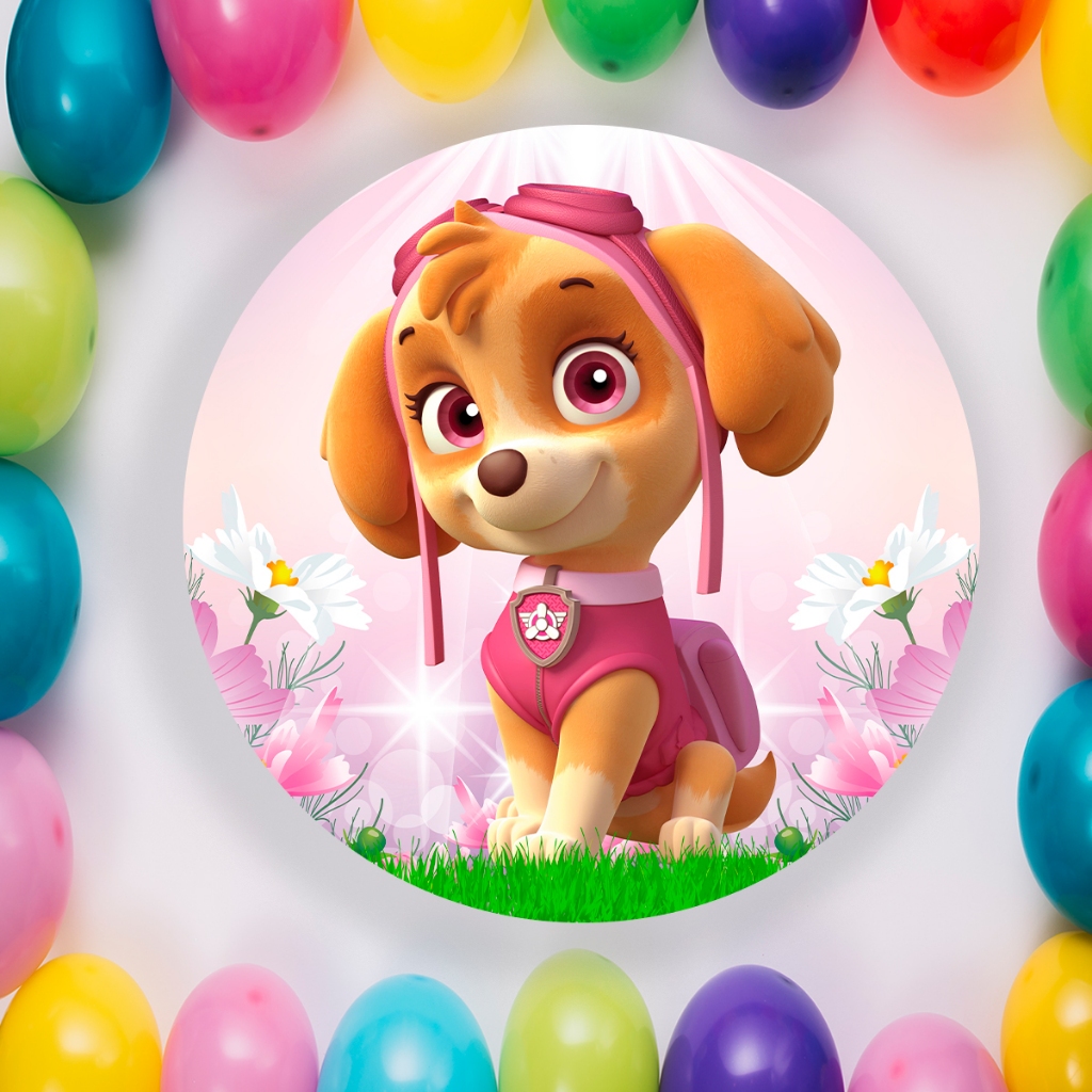 Capa Para Painel Redondo Temático Patrulha Canina Sky Cachorro Malha Tecido Para Festa Aniversario Infantil Crianças