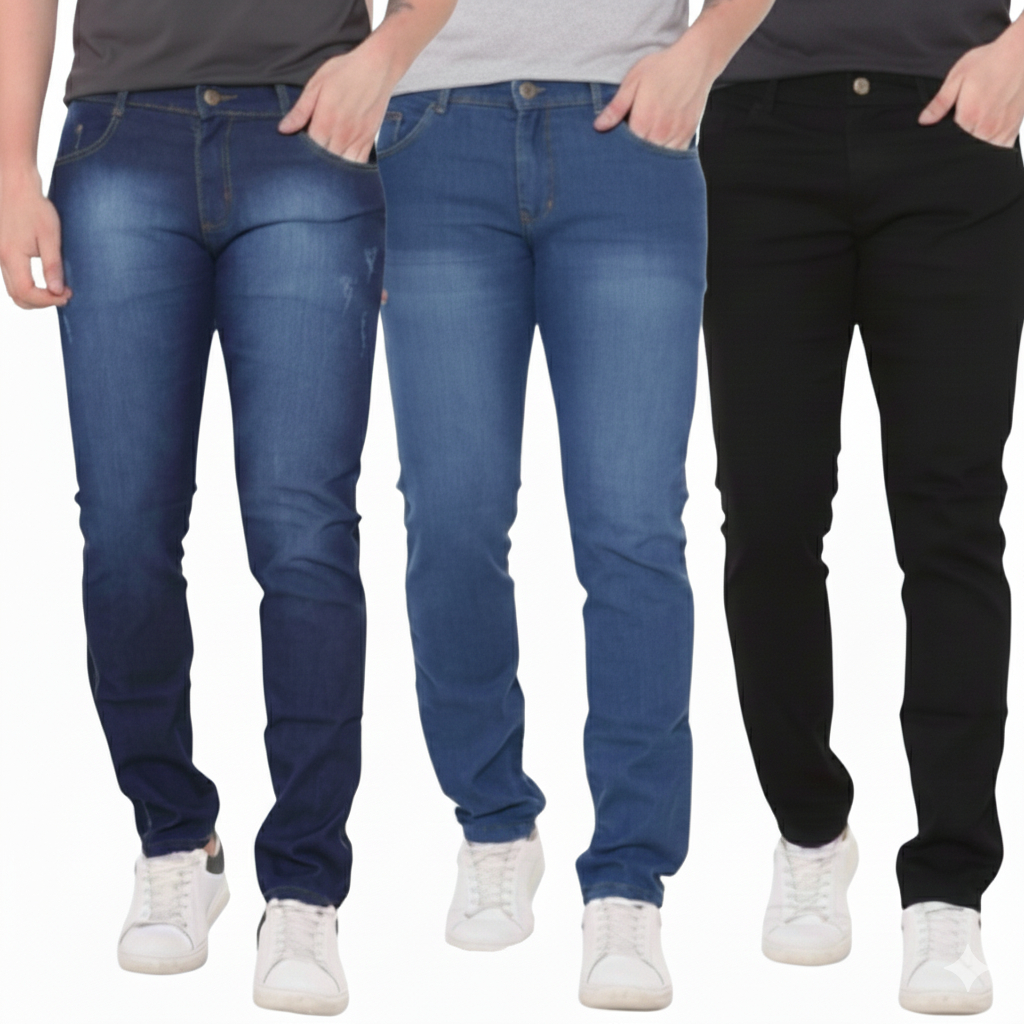 Kit 3 Calças Skinny Jeans Masculina Caimento Justo Lycra Elastano Conforto Extremo
