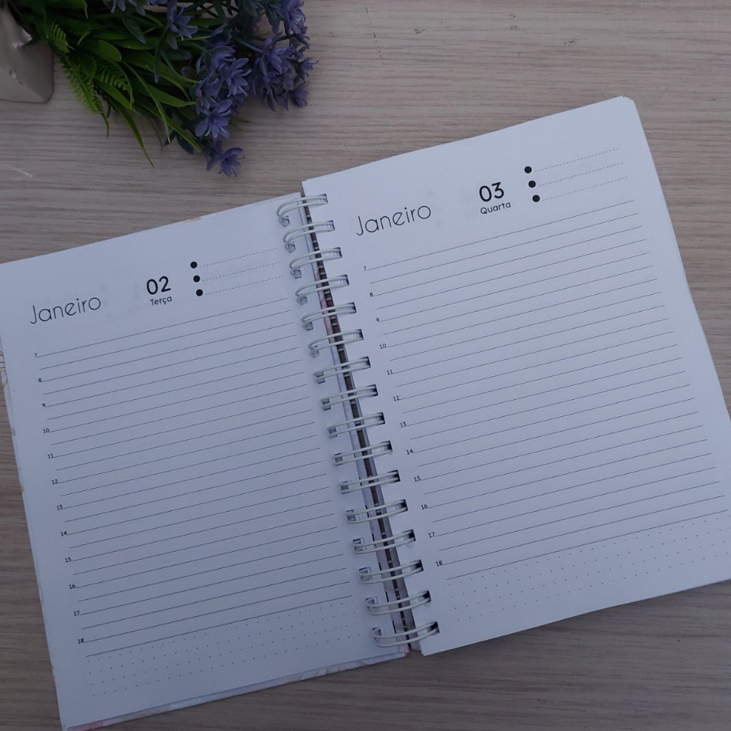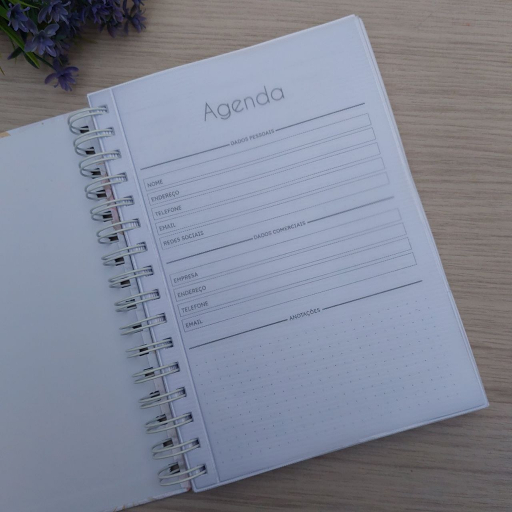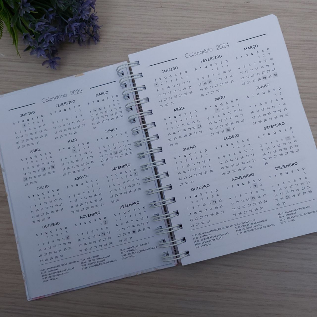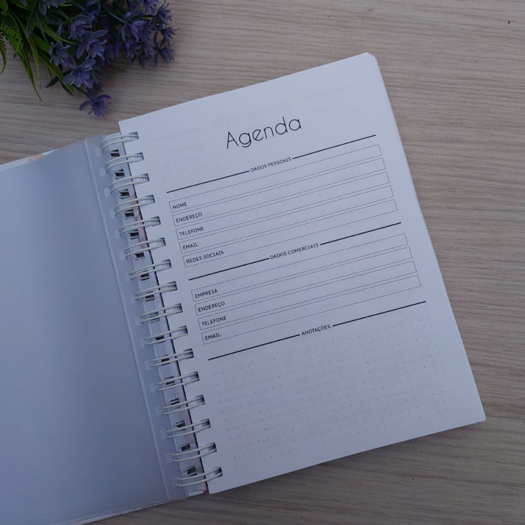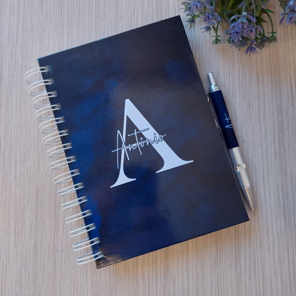 Combo Agenda 2025 com caneta Alfabeto branco com azul Masculina
