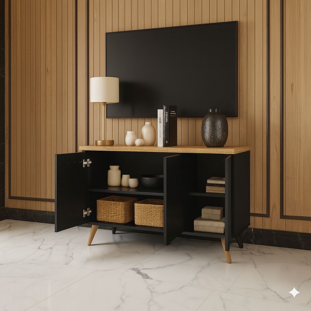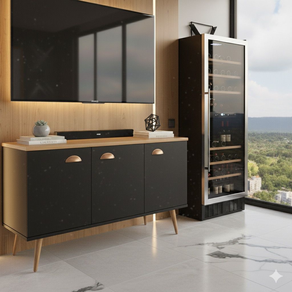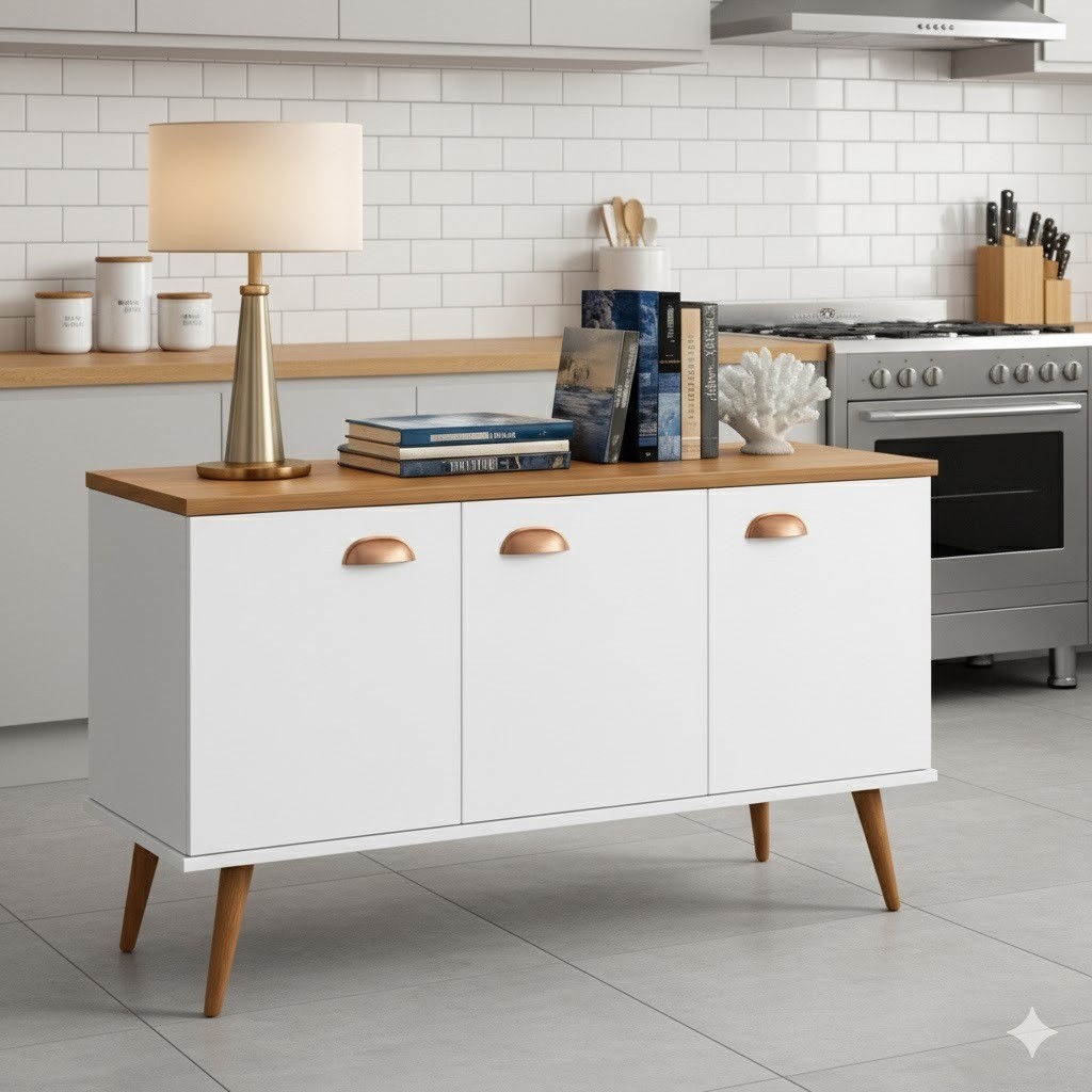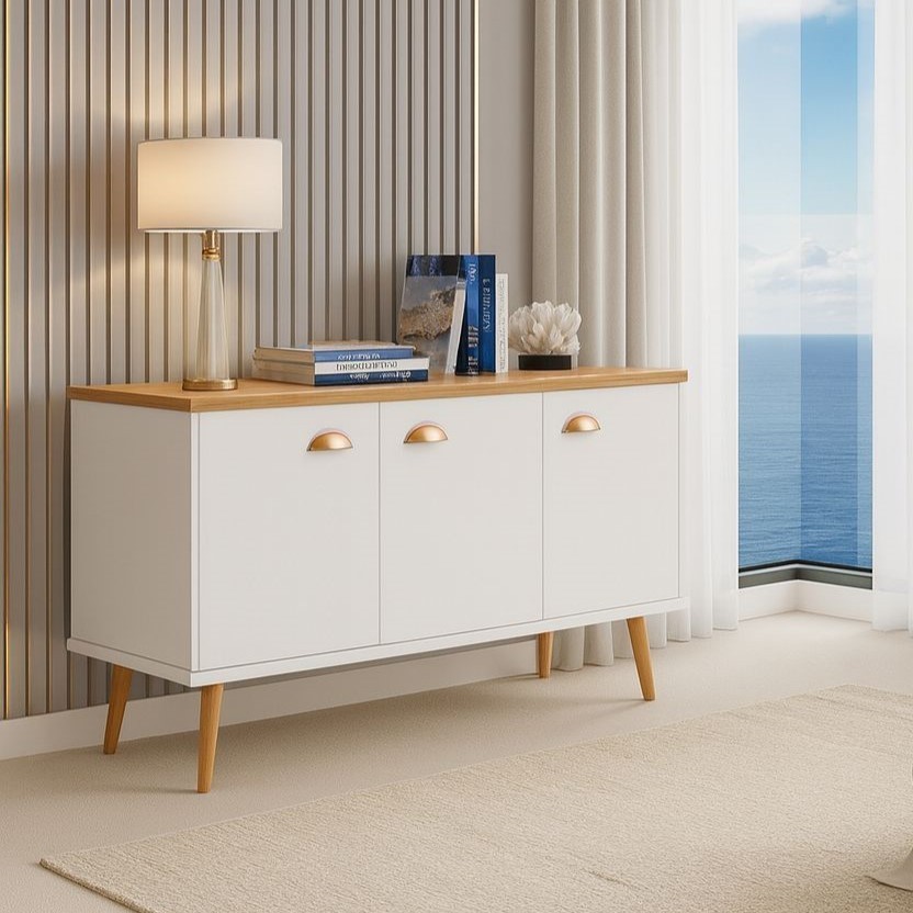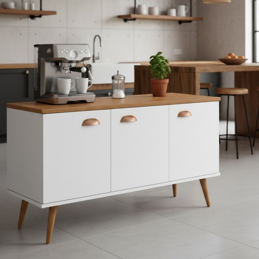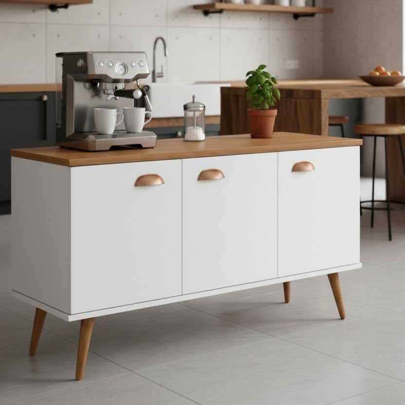 Aparador Buffet 3 Portas com Pés de Pálito Estilo Retrô - Ideal para Cantinho do Café