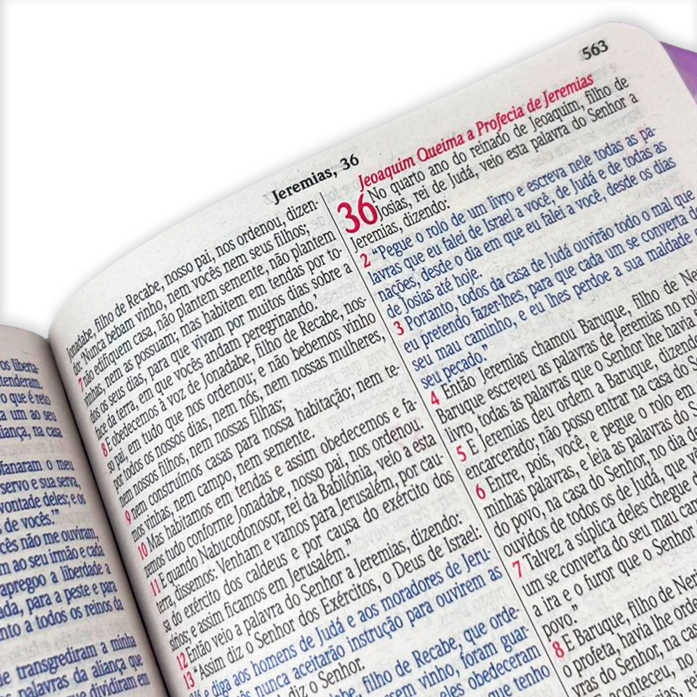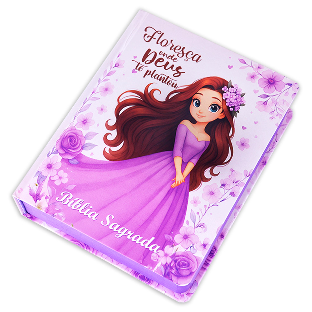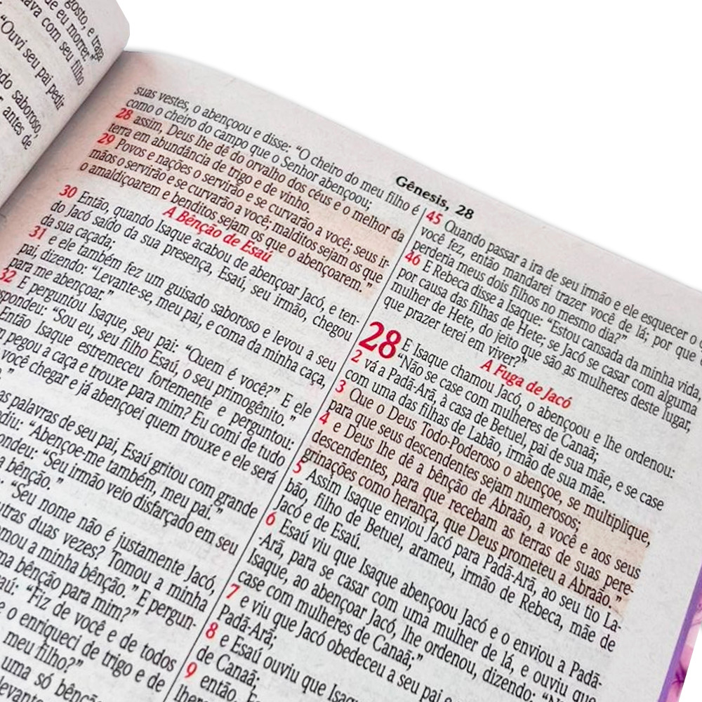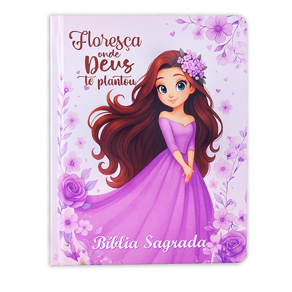 Bíblia Sagrada Nova Versão Almeida Atualizada 2025 Capa Dura Feminina - Floresça Lilás - Fácil Leitura