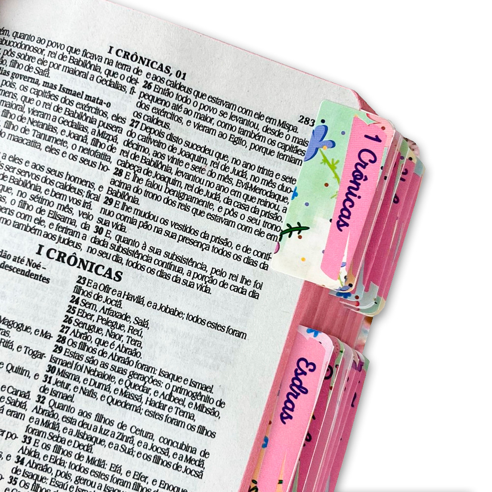 Kit 2 Bíblia Sagrada Evangélica Com Índice Abas Adesivas - Flores Aquarela e Yeshua Rosa C/ Harpa