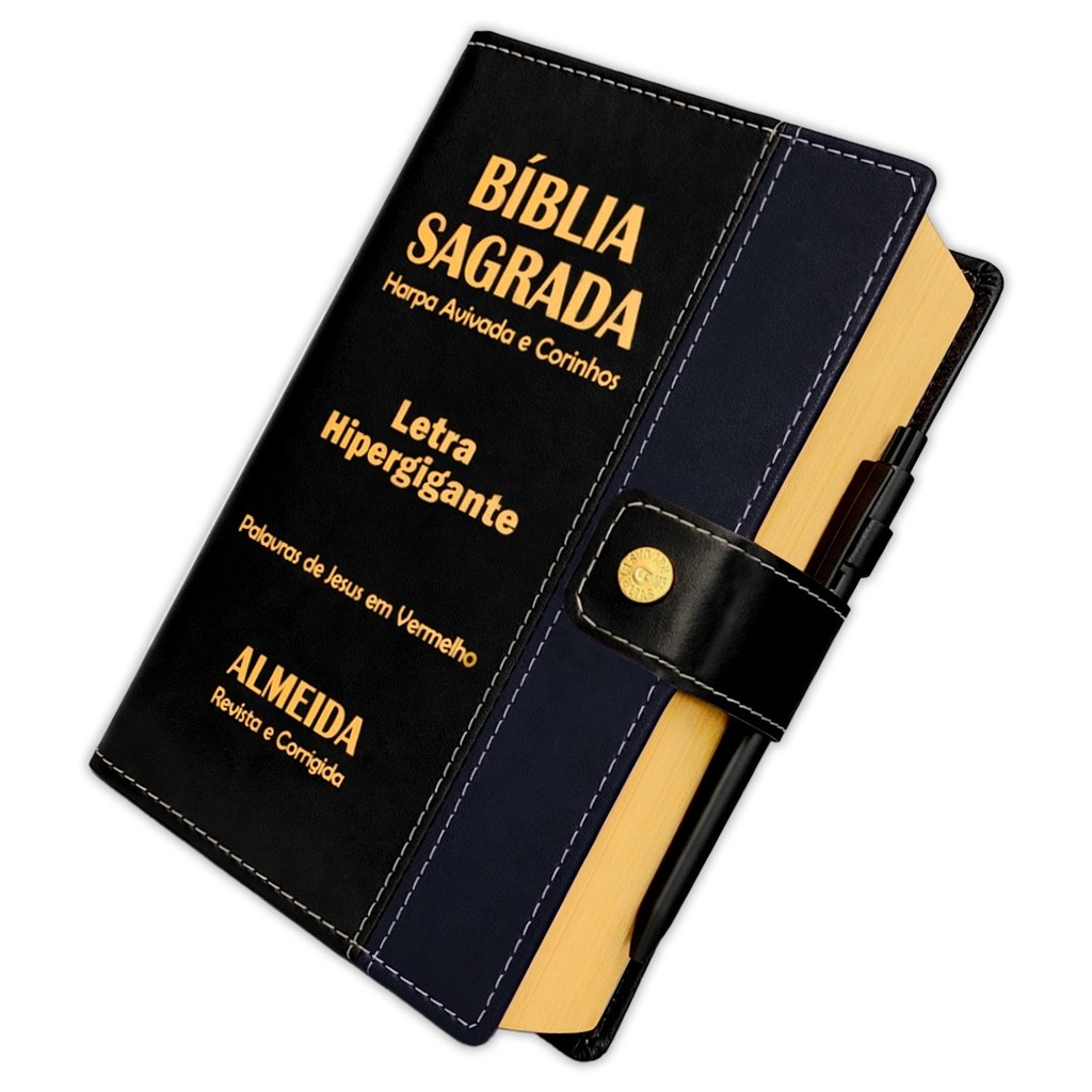 Bíblia Sagrada Letra HIpergigante Botão Preta/Azul - 14x21cm