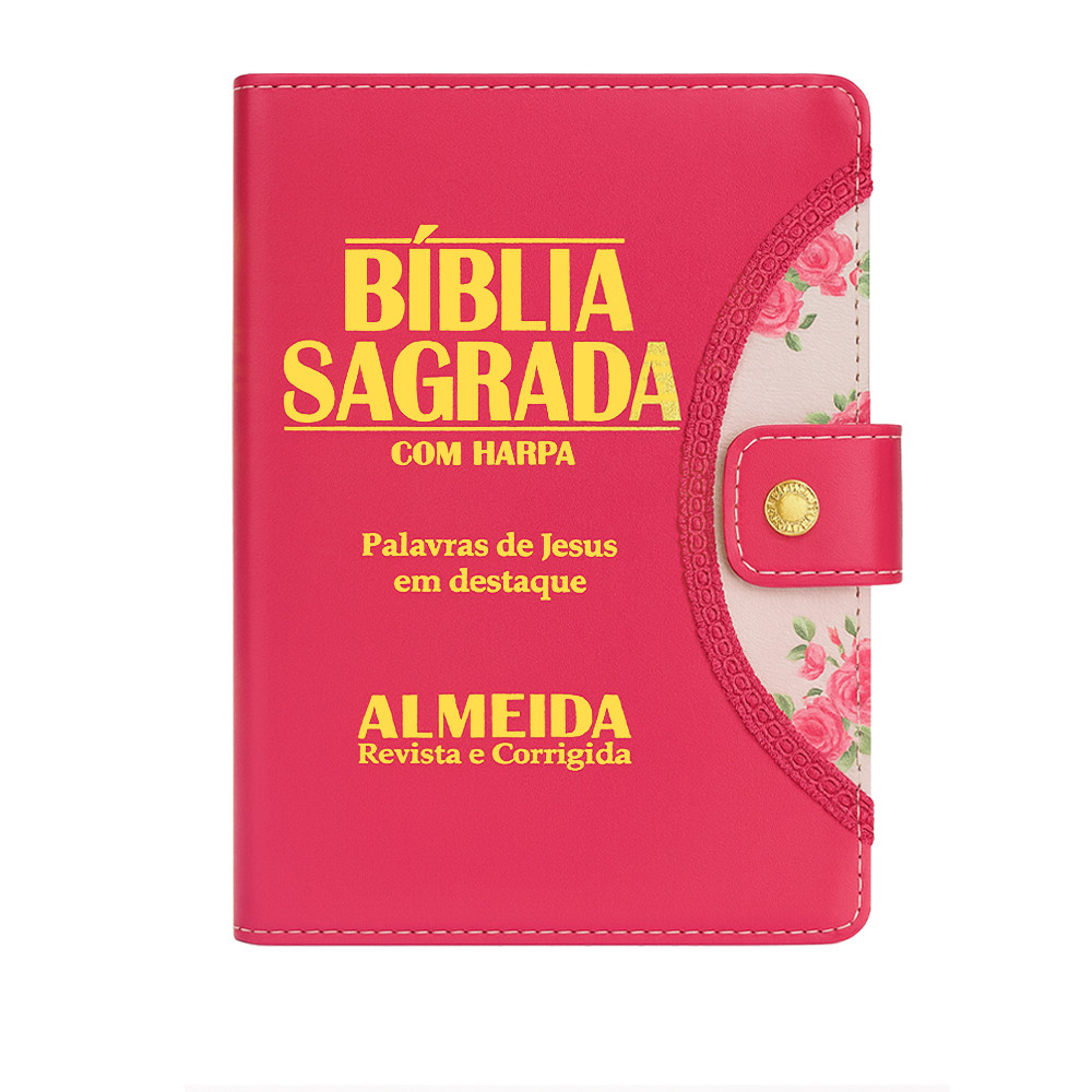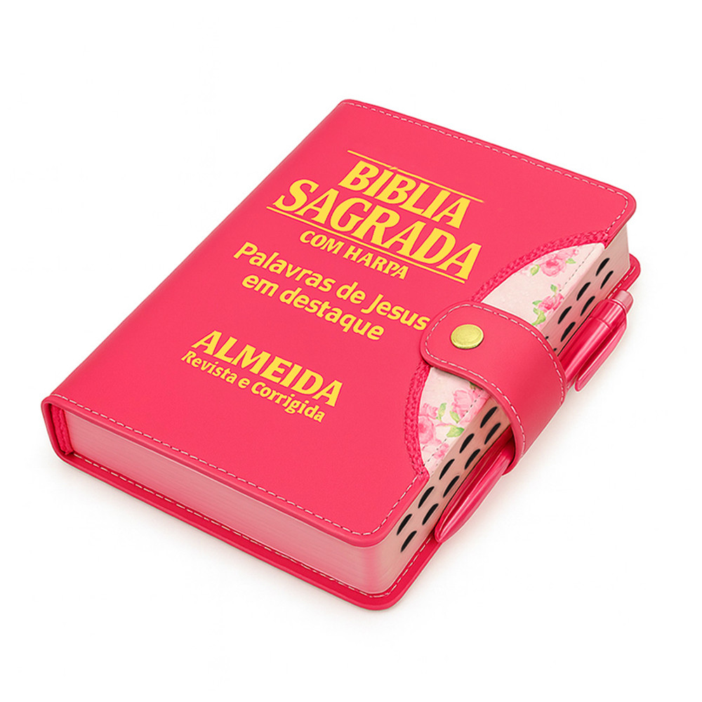Bíblia Sagrada Letra Grande Feminina Com Harpa - Pink para Mulher- Botão e Caneta - PROMOÇÃO