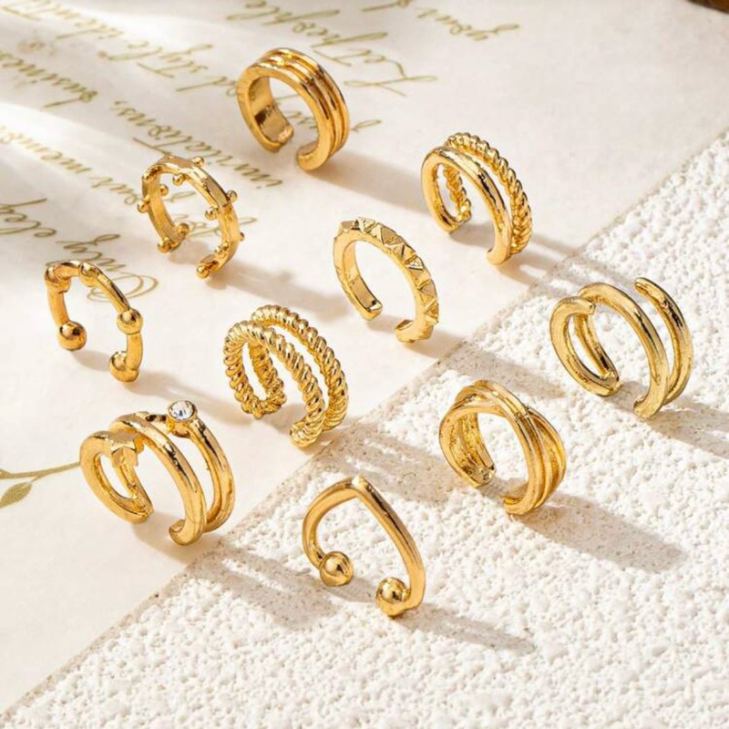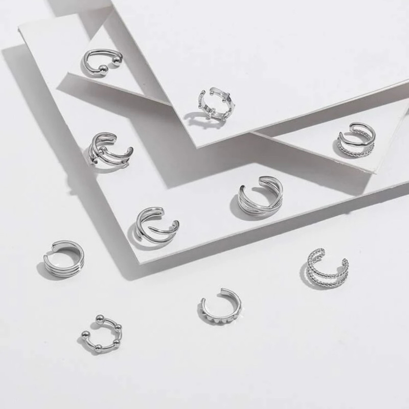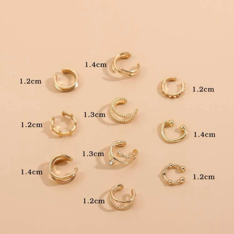 10 Piercing Fake Minimalista de Orelha Kit Brincos de Pressao Sem Furo Conjunto Falso Da Moda Dourado e Prata SHB12
