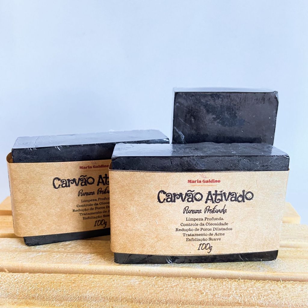 Sabonete de Carvão Ativado 100g Anti Acne,Pepino e Leite de Cabra Artesanal