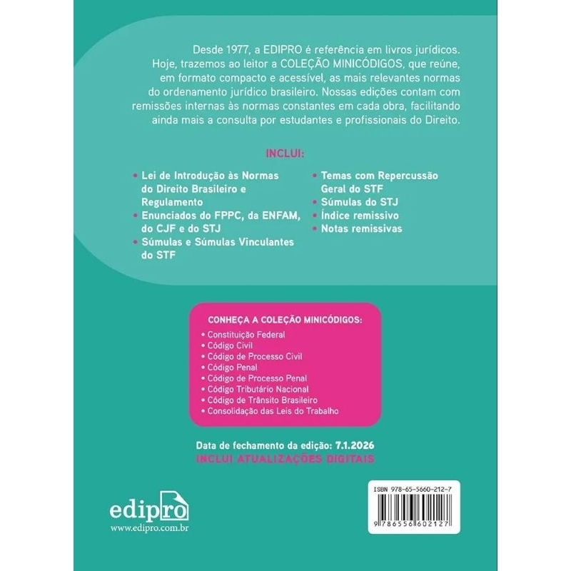 CPC - Código de processo civil 2026 - Coleção Mini Códigos - ( LANÇAMENTO ) Livros de direito