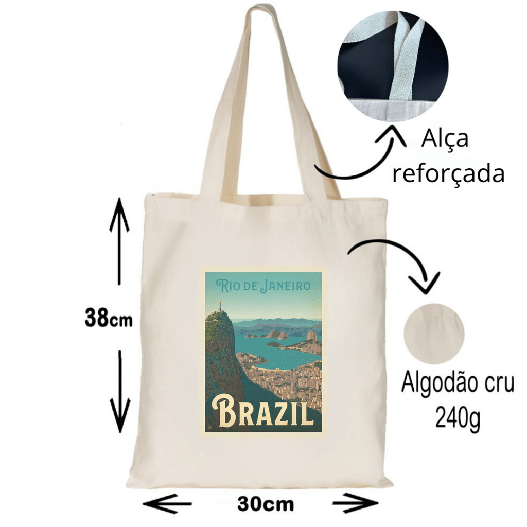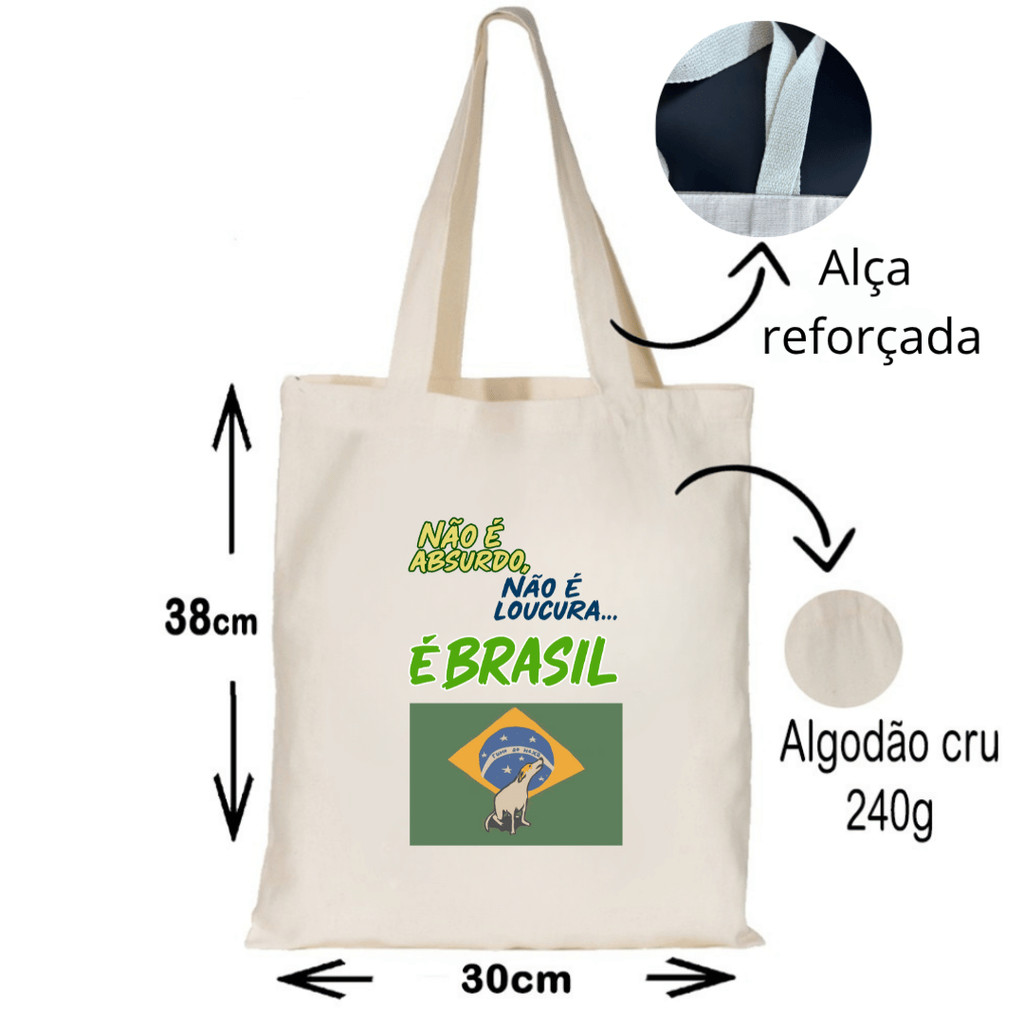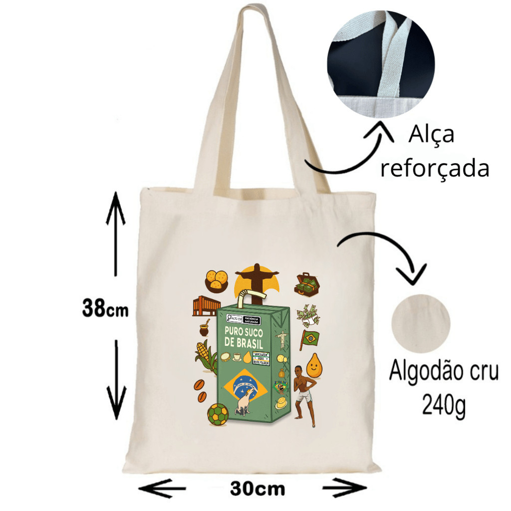 ECOBAG ESTAMPADA TEMA BRASIL- 100% algodão cru, 32X38, ALÇA REFORÇADA