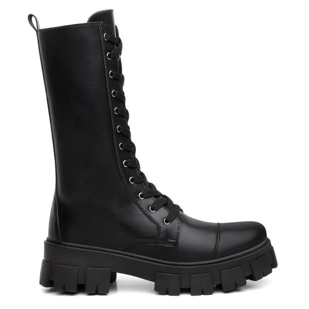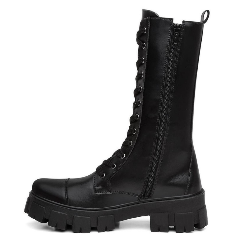 Bota Coturno Feminino Tratorado Cano Longo Alto Blogueira Militar