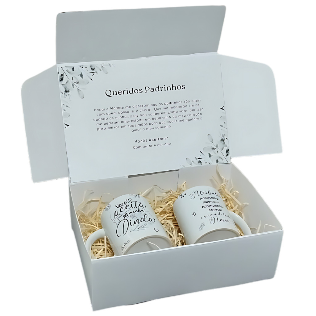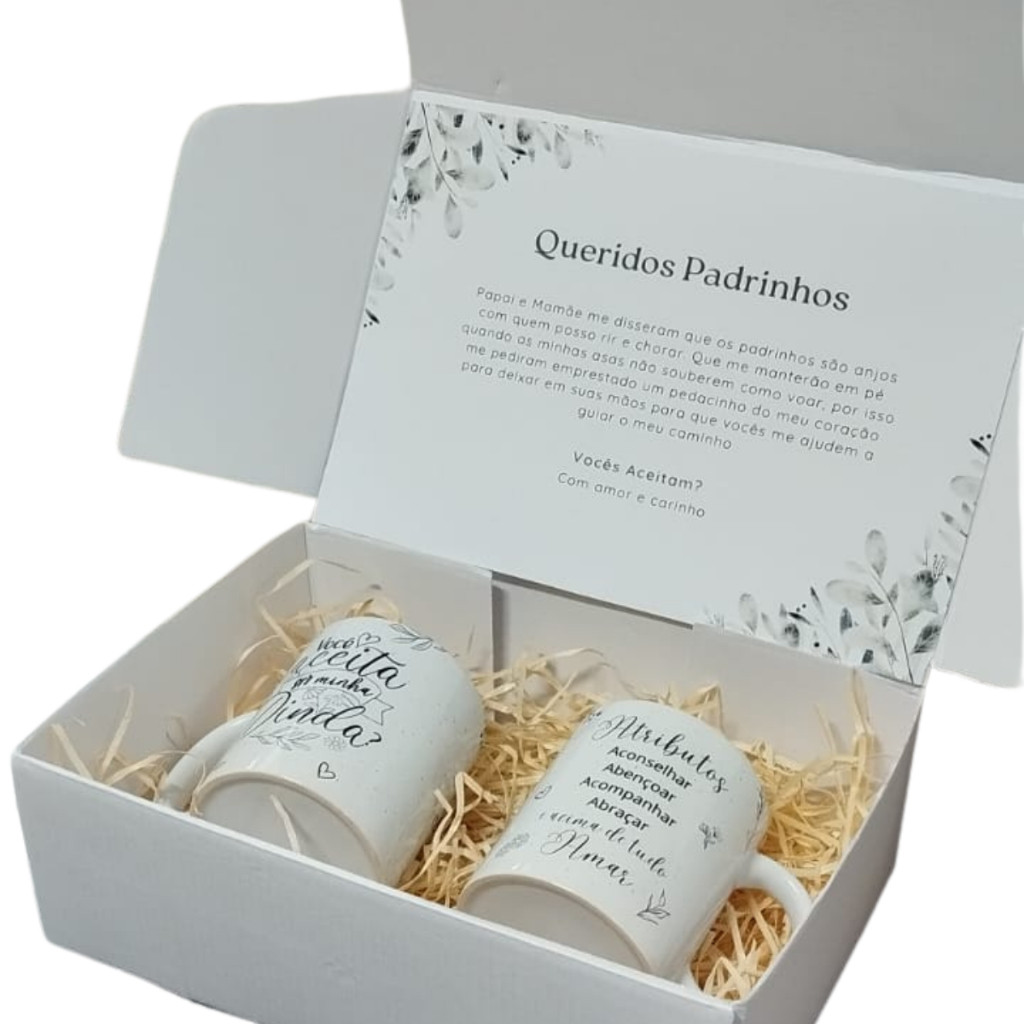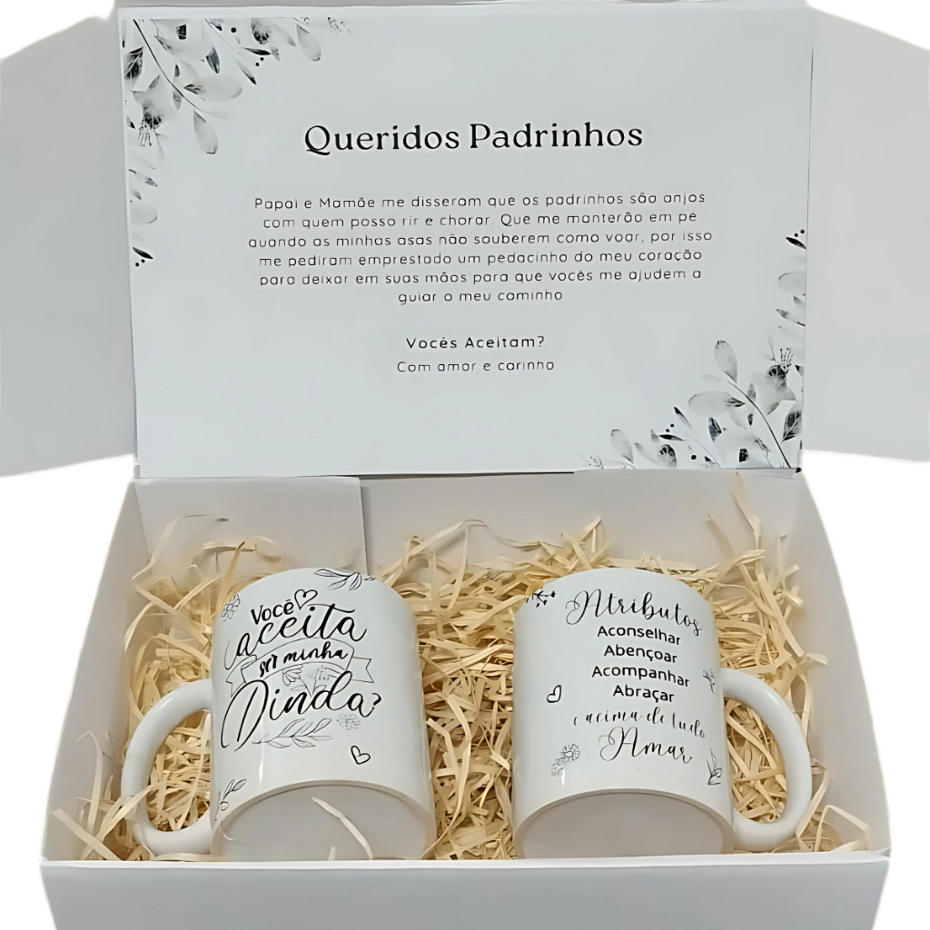 Caixa Convite Padrinhos Batismo Batizado Promovida Dinda Caneca Madrinha Presente Dindo