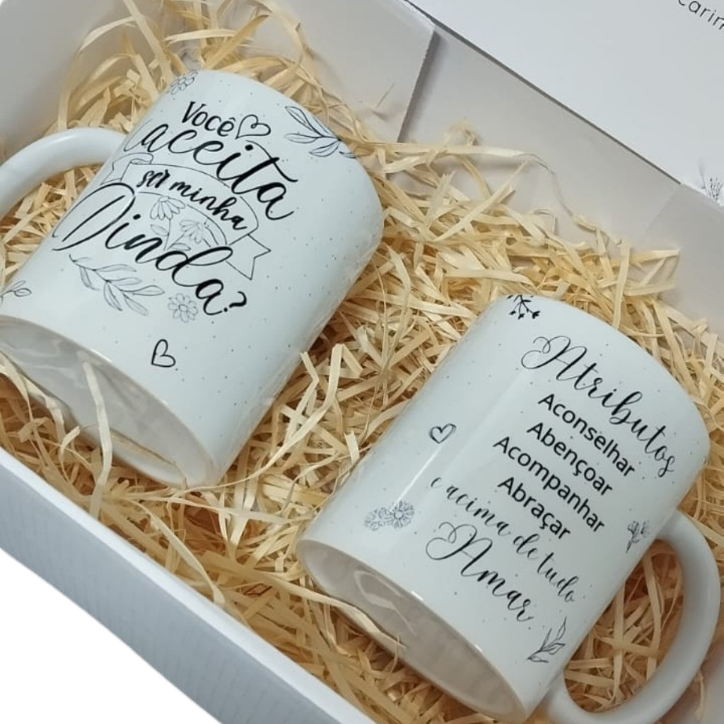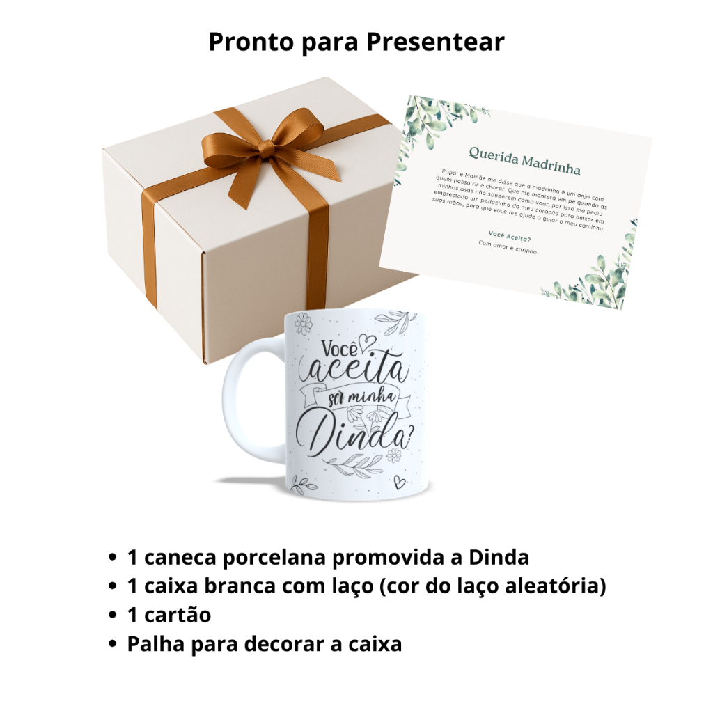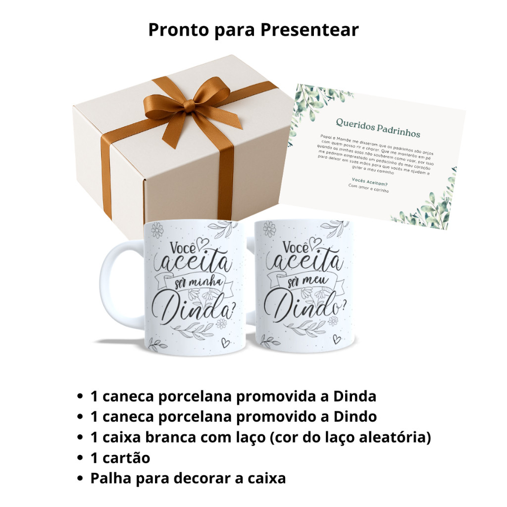 Caixa Convite Padrinhos Batismo Batizado Promovida Dinda Caneca Madrinha Presente Dindo