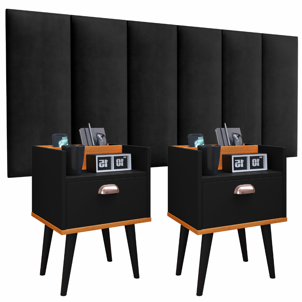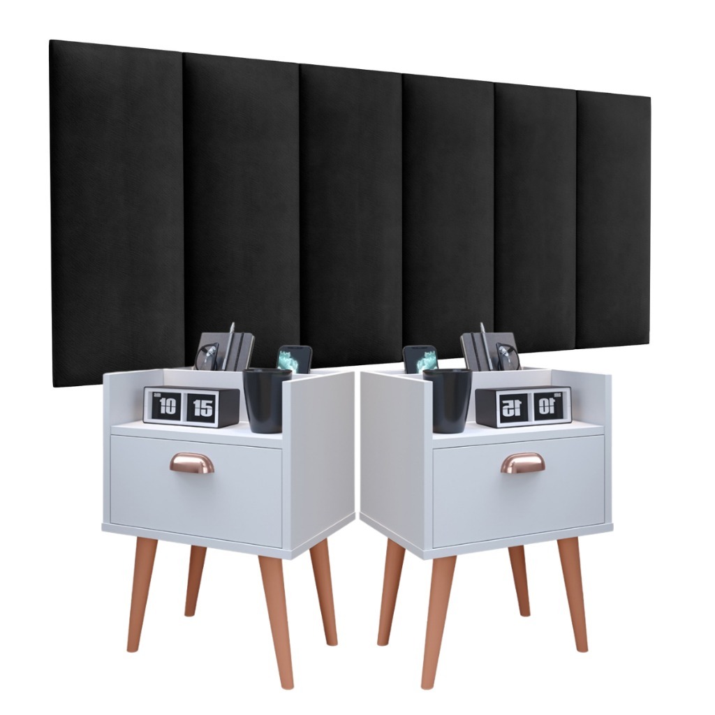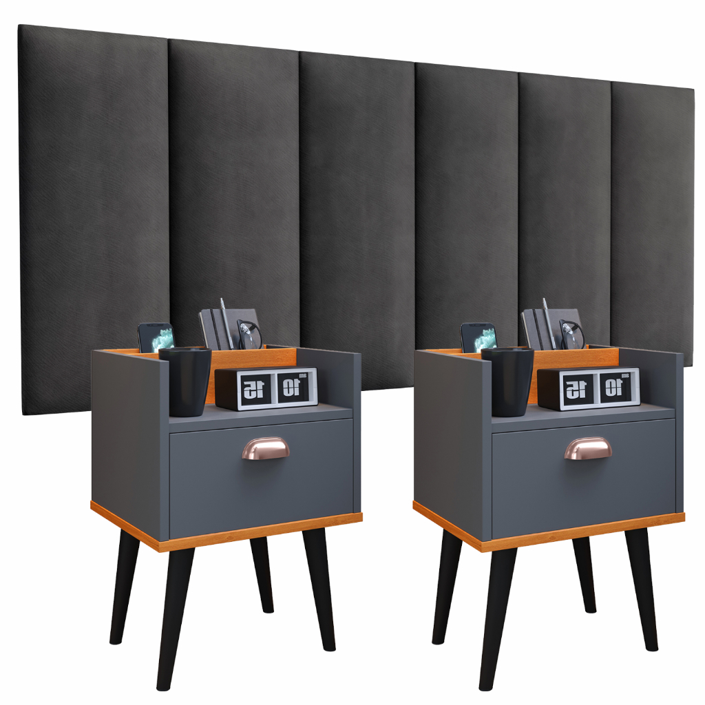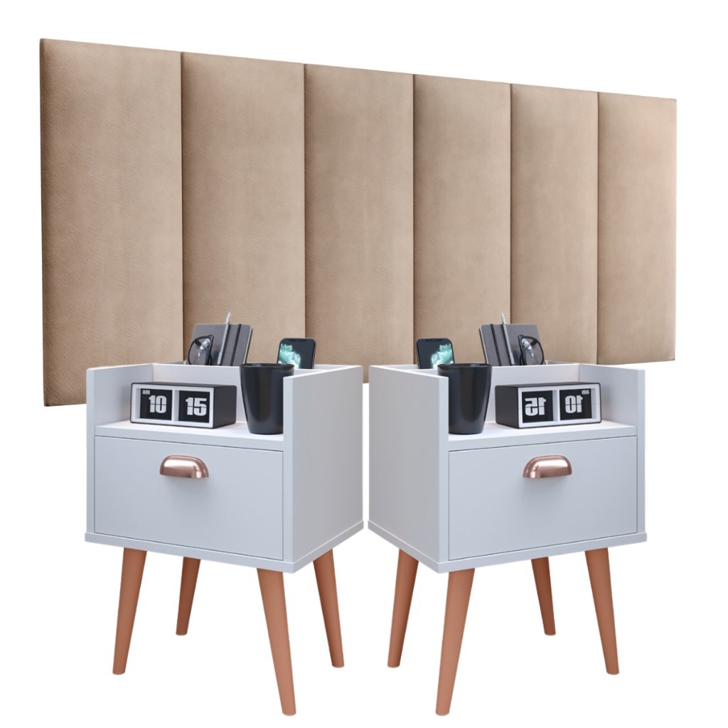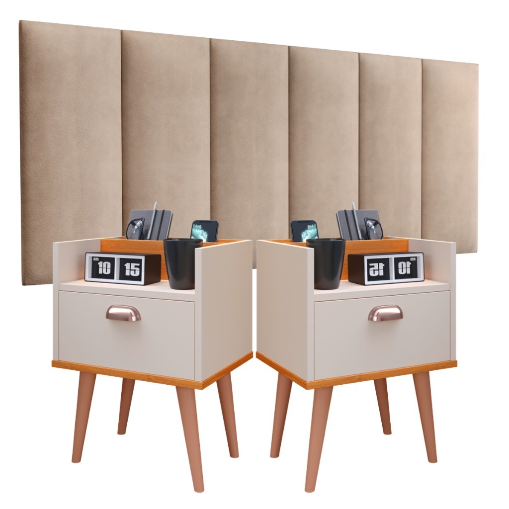 Kit 2 Mesas De Cabeceira Milena E Cabeceira Julia 1.40 Casal Conj Criado Retro 1 gaveta Varias Cores