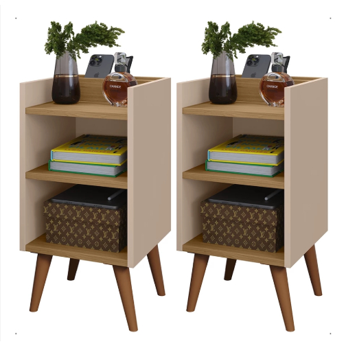 KIT 2 Mesa de Cabeceira Max com Porta Celular Retrô Criado Quarto com Prateleira Nicho Varias Cores