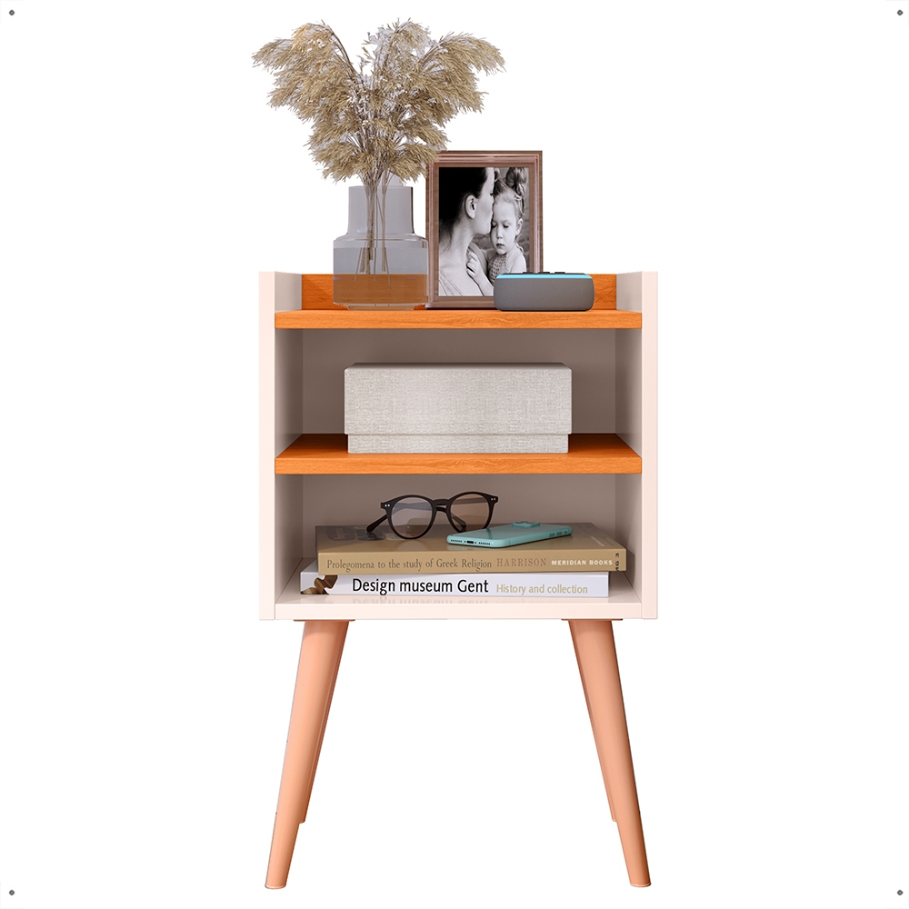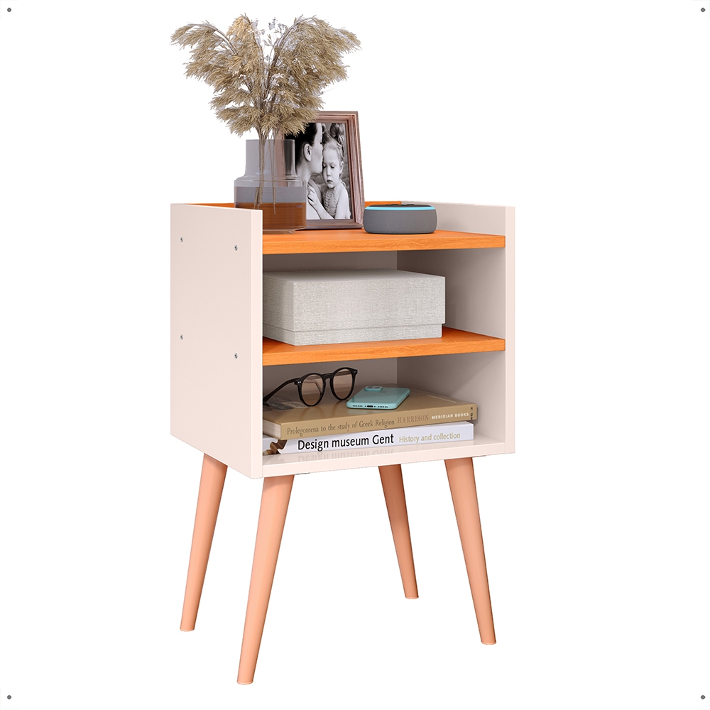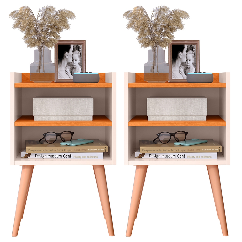 Kit2 Mesa De Cabeceira Retrô Mesa Decorativa Quarto Nicole Mesa Canto de Cama Cor Off White Cinamomo