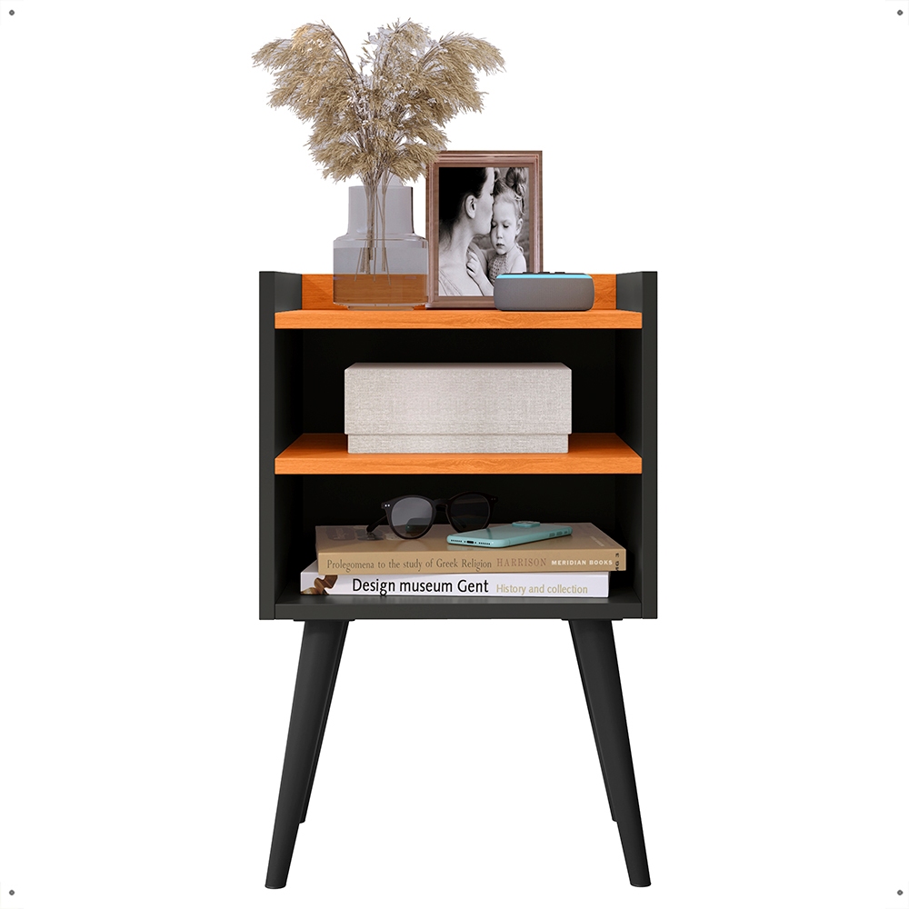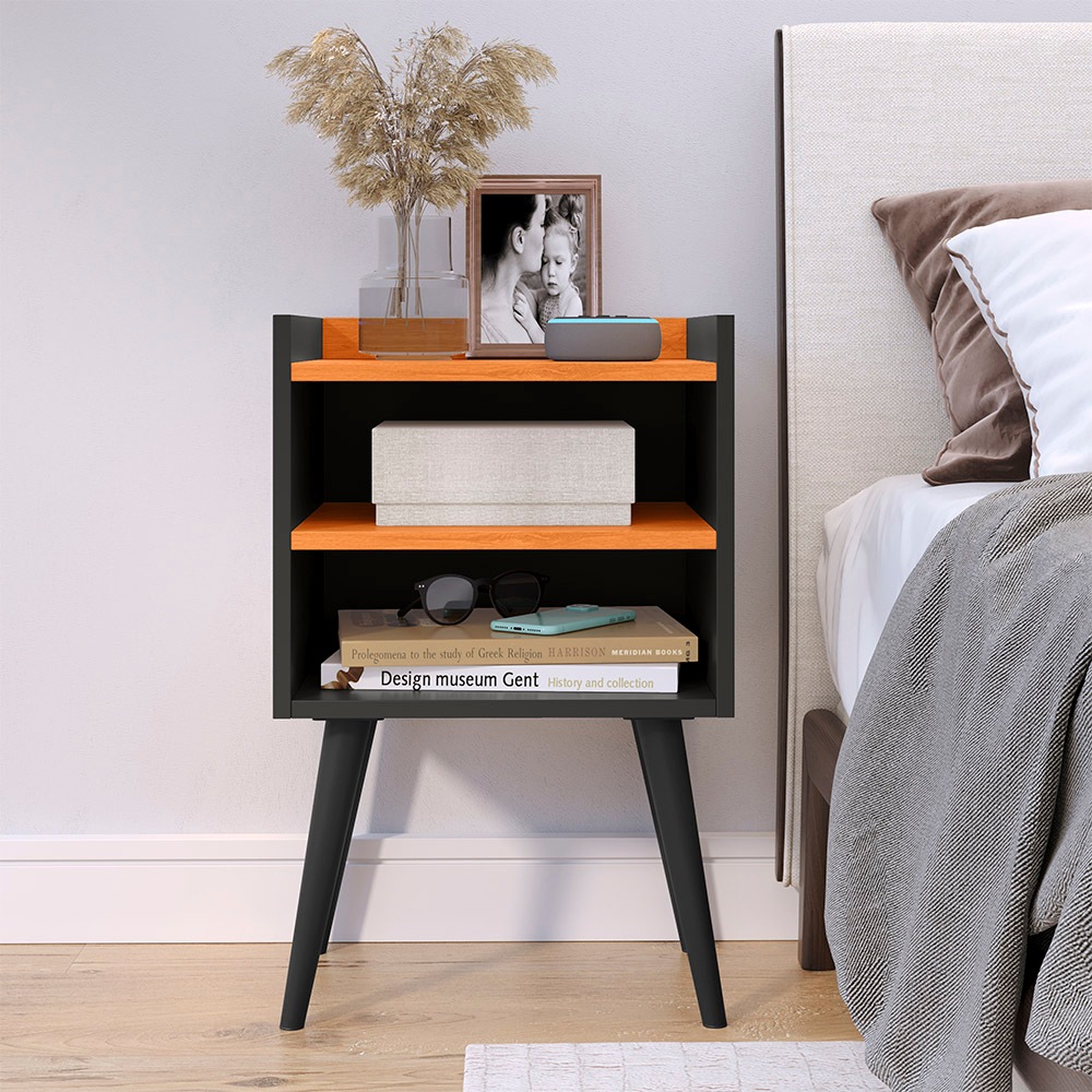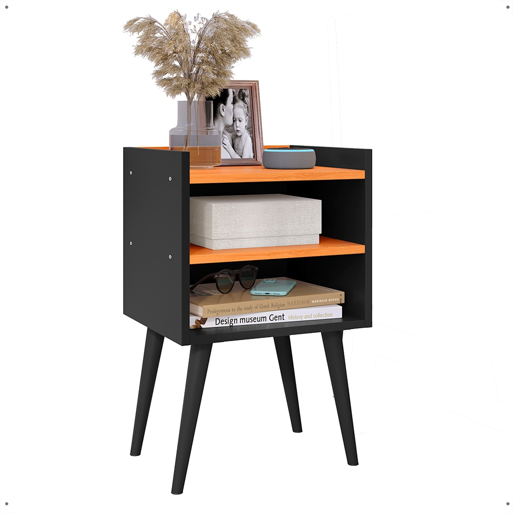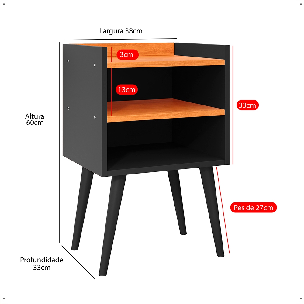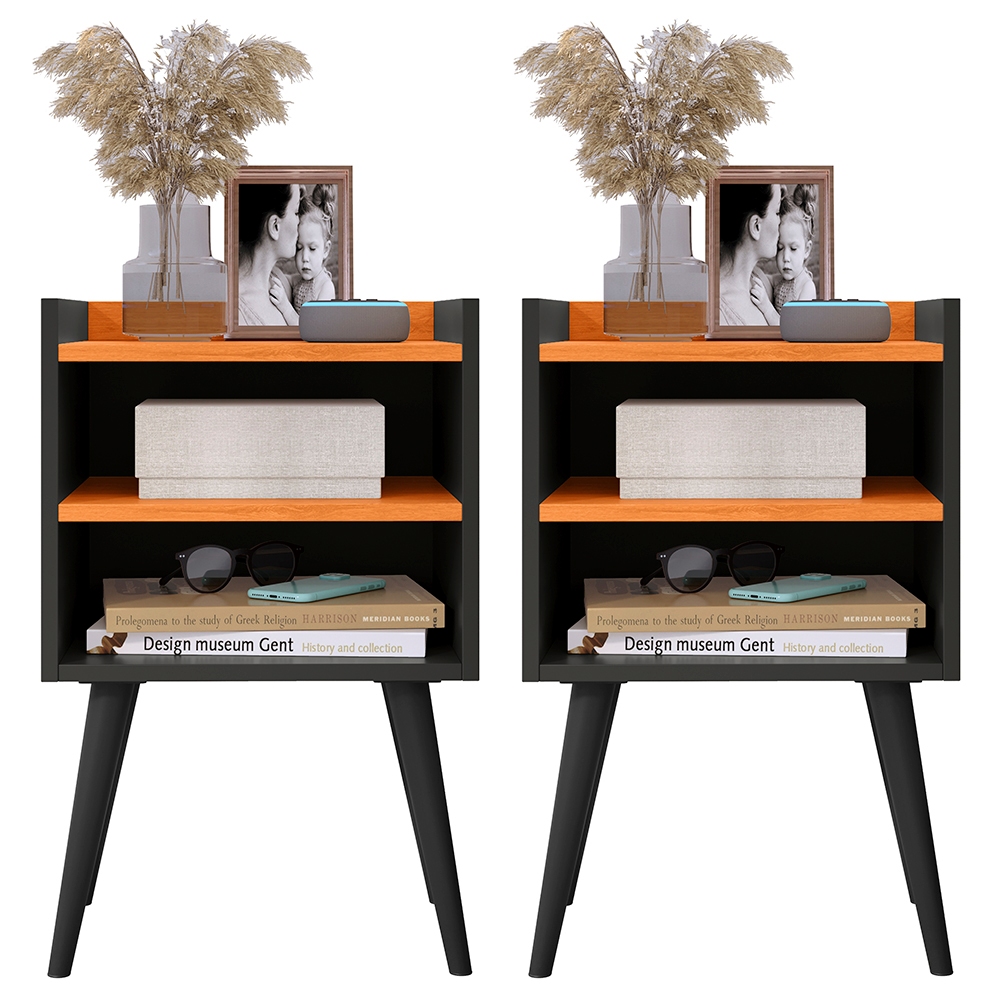 Kit 2 Mesa De Cabeceira Retrô Mesa Decorativa Quarto Nicole mesa canto de cama Cor Preto Cinamomo