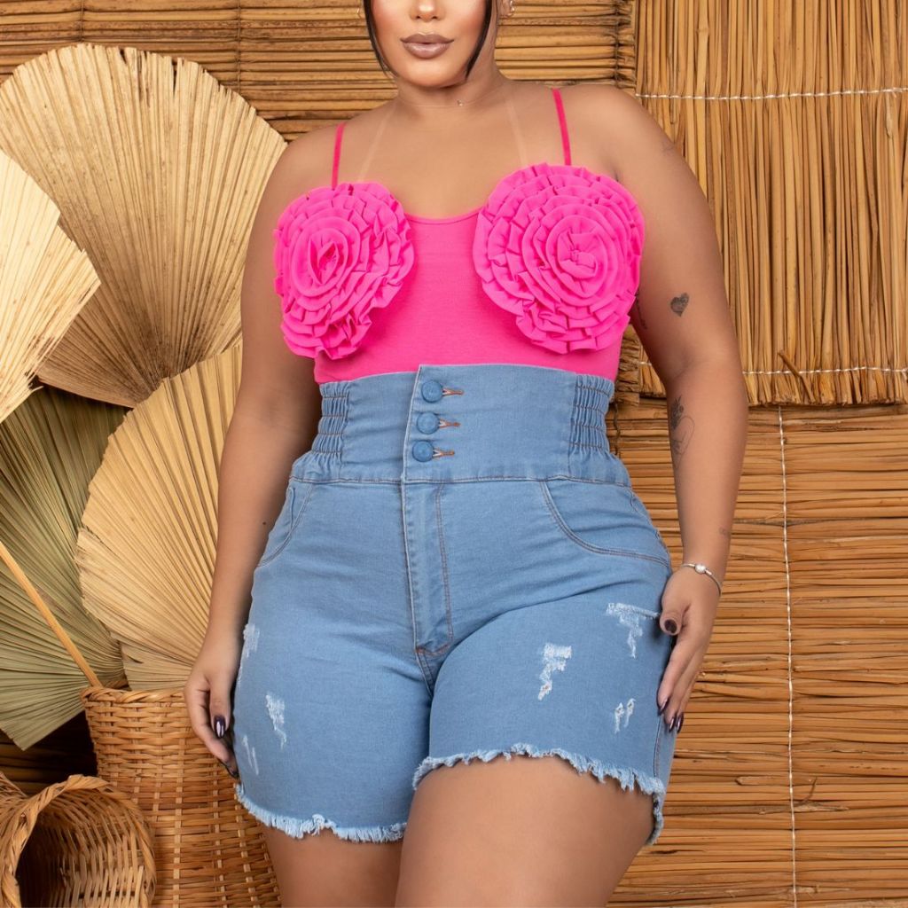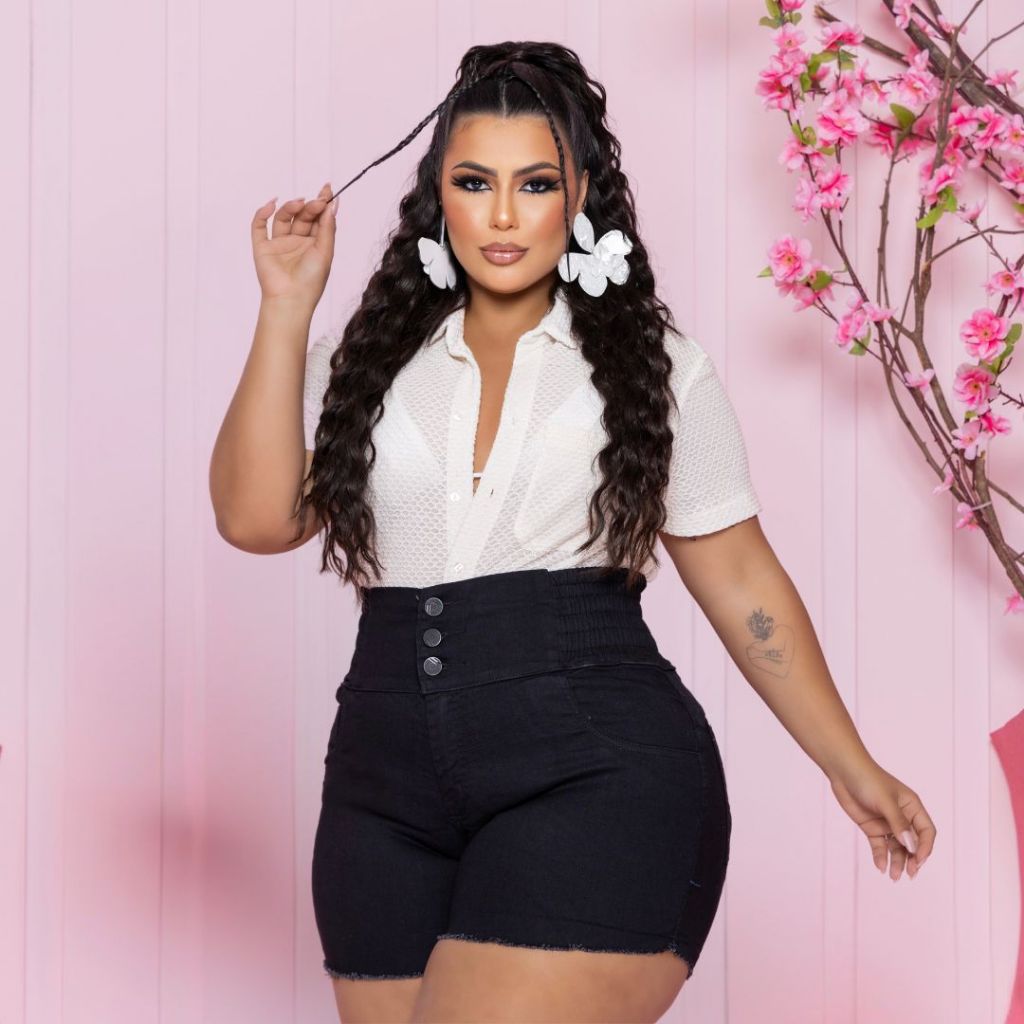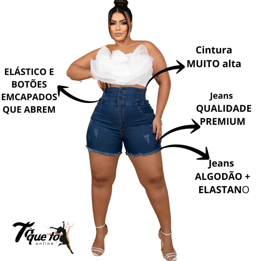 short jeans seca barriga plus size com elástico cintura alta com elastano empina bumbum premium