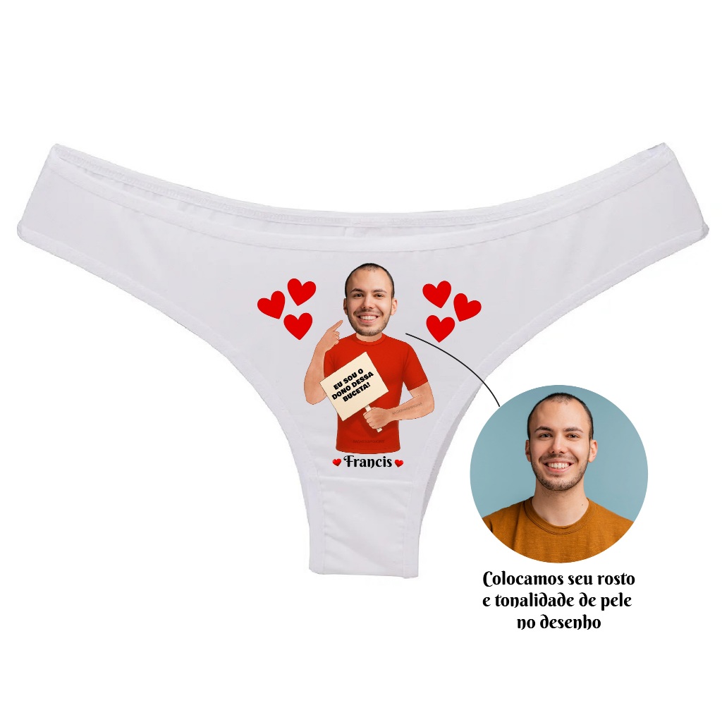 Calcinha sexy personalizada com foto dia dos namorados casal divertida vários modelos