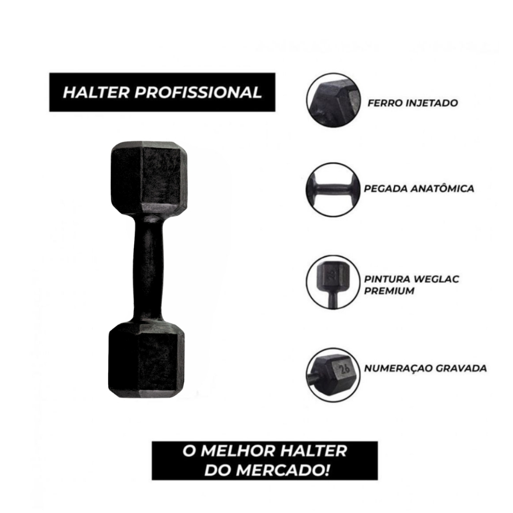 Kit Par Halter de Ferro Fundido12kg Sextavado Pintado Fitness Academia