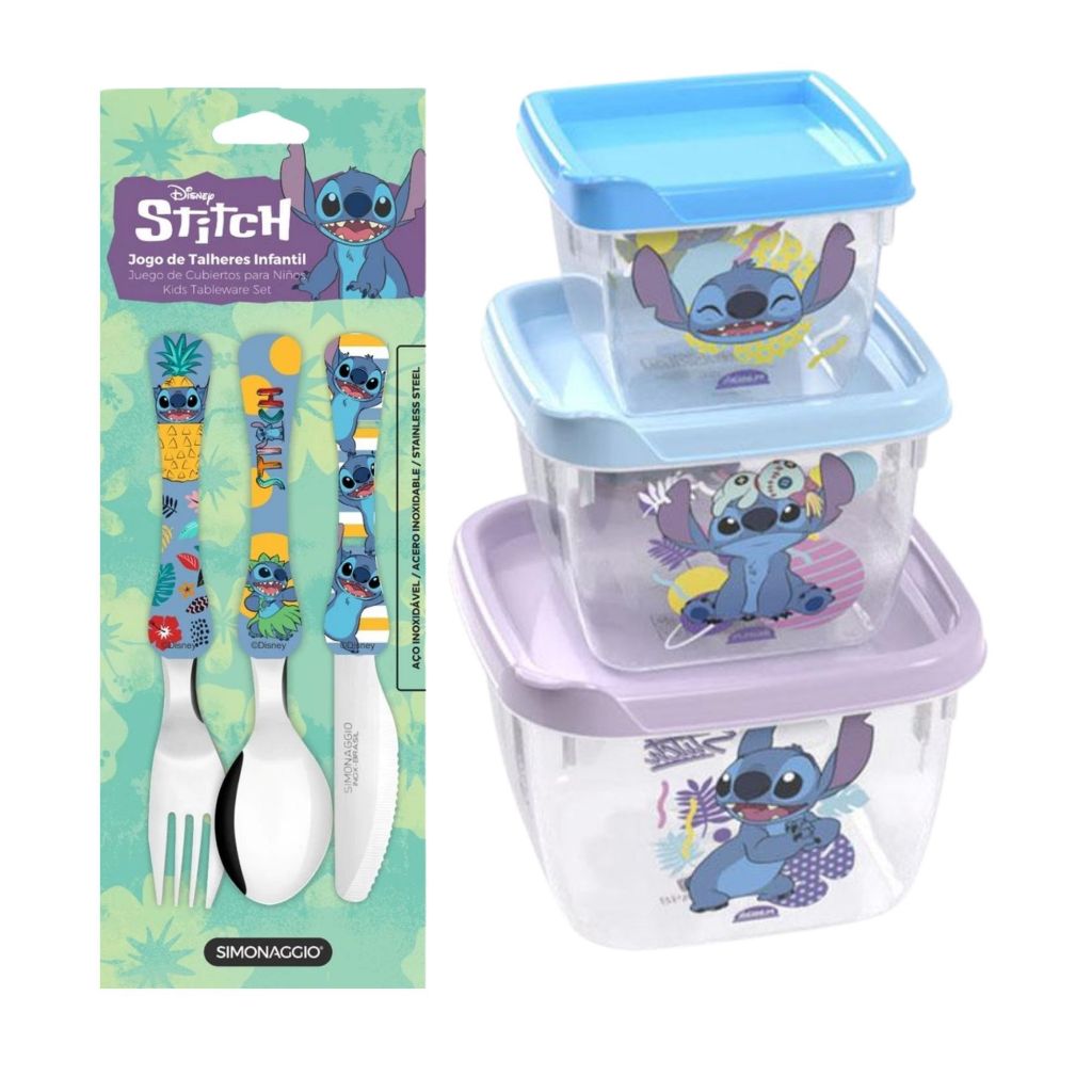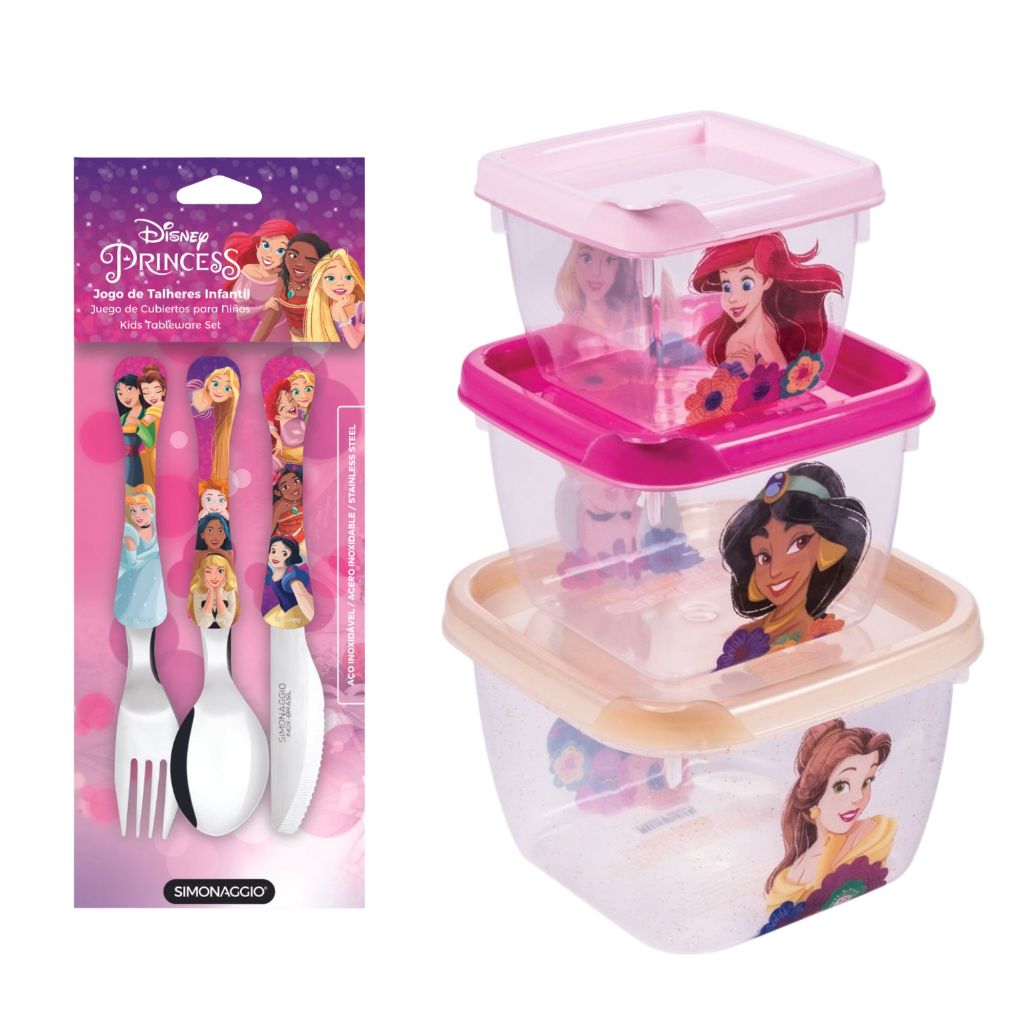 Kit Talher + 3 Potinhos de Plástico infantil BPA Free Disney Plasútil