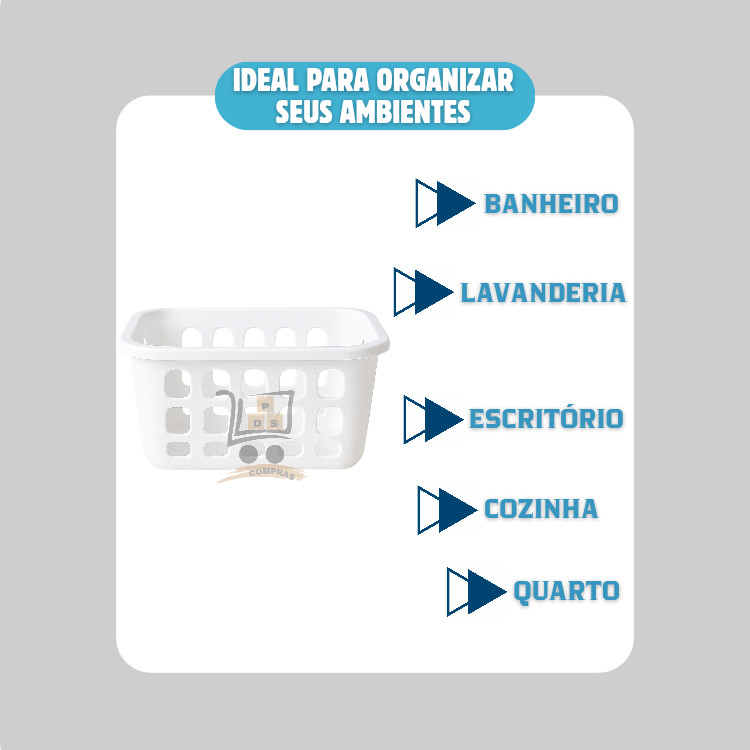 Kit 2 Cesto Organizador Multiuso Médio Branco 20x15,5x6,5cm Armario Gaveta Geladeira Banheiro Cozinha Lavandeira